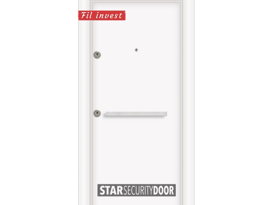• Качествена блиндирана врата, в стилен изчистен дизайн, със стилна сатенена външна дръжка. Подходяща и за външен монтаж.