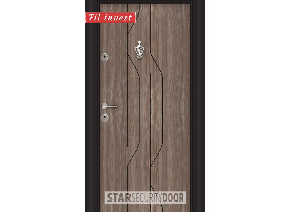 Врата Star Security Door серия Parkdoor модел SL210 Танганика е качествена блиндирана врата, с красива фрезовка в модерен дизайн, част от колекцията на входни врати Star Security Door – Стар Секюрити Доор.