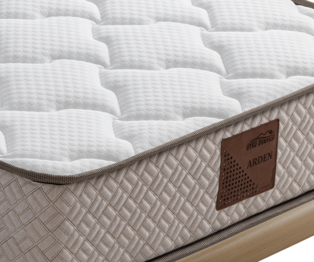 Матрак Arden е с вложена динамична Bonnell Spring пружинна система, обвита с борд от дунапрен с висока плътност за по-добра форма и устойчивост. Конструкцията е допълнена с омекотяващи слоеве от поддържащ дунапрен, високоеластична HR пяна, твърд филц 1200 г/м², омекотителна вата и силиконизирани влакна, което осигурява балансирана поддръжка на кръста, гърба, врата и коленете. Матракът Arden е капитониран с дишаща дизайнерска дамаска Knitted Fabric и разполага с удобни странични дръжки за лесно пренасяне.