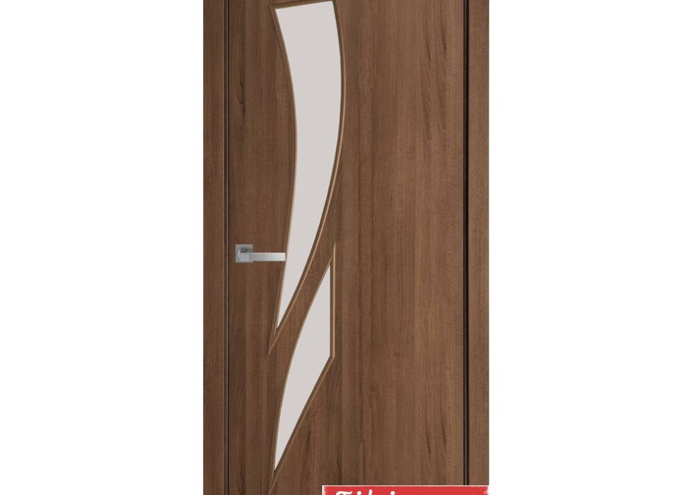 Интериорна врата Камея (е с остъклено крило), предлага се с покритие от декоративно PVC фолио, в 2-два цвята по избор (без оскъпяване) – кестен и златна елха .