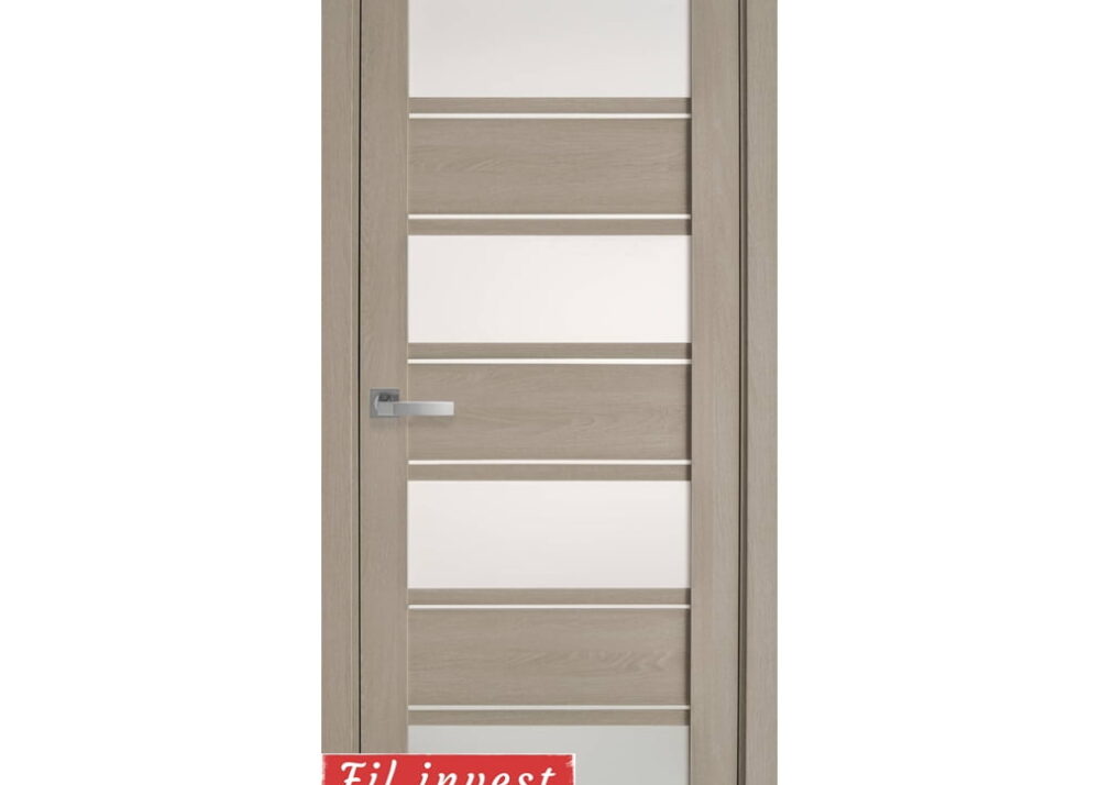 Интериорна врата Нов Стил модел Елиза млечен дъб е нов модел качествена и устойчива, в модерен дизайн, с остъклено крило + елегантни сатенирани линии, част от колекцията на врати Нов Стил.