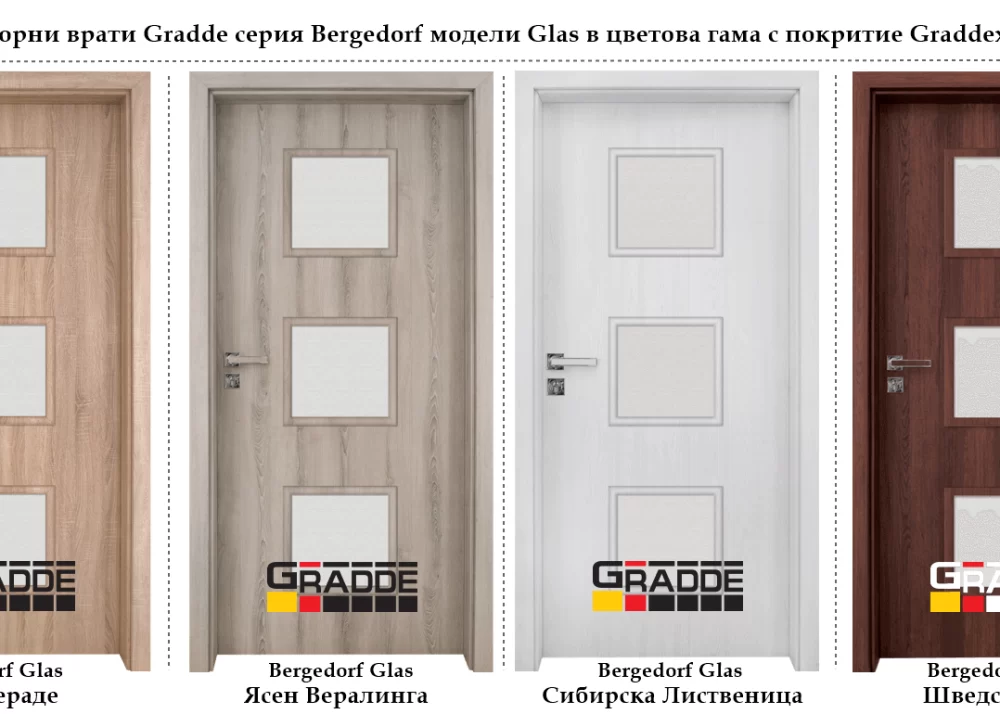 Интериорна врата Gradde серия Bergedorf модел Glas Сибирска Лиственица – качество, стил и издръжливост на отлична цена от Fil Invest
