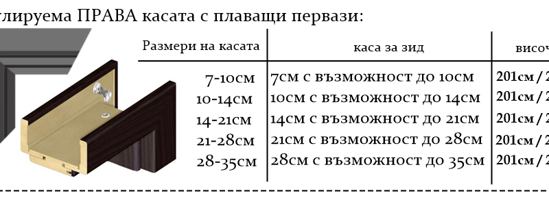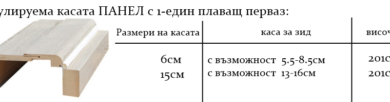 Крила с размери 60,70,80см с височина 197см в комплект с ПРАВА каса с височина до 201см или с каса ПАНЕЛ с височина до 201см, според различните размери на касите.
