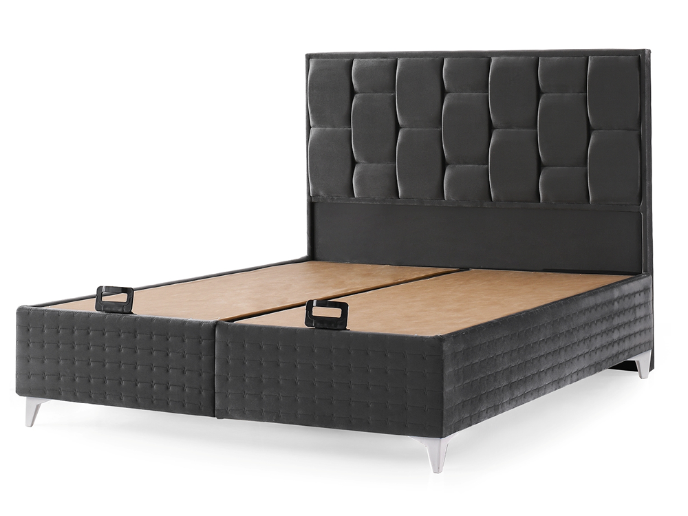 Тапицираното легло се доставя разглобено, много добре пакетирано с велпапе и найлон на 3 части + матрака. Лесна за монтаж – табла, лява основа и дясна основа, които трябва да се сглобят (повдигащите подматрачни рамки с амортисьорите са сглобени фабрично). След сглобяването на 3-те основни модулни елемента, остава да се постави матрака.