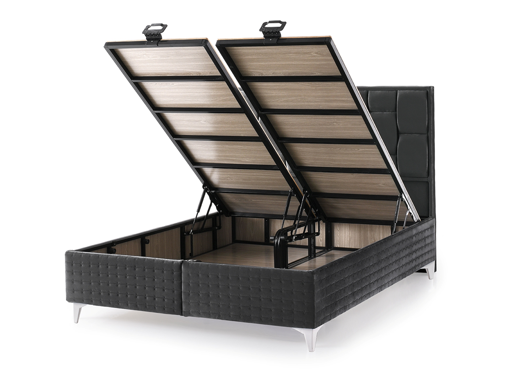 - Базата е снабдена с дъно и нов модел повдигаща система от 1бр (за единичните размери) / 2бр метална подматрачна рамка с цял ламиниран ПДЧ панел. Рамката е оборудвана с 2бр / 4бр газови амортисьори /2х2/ по 750N, може да се повдига всяка основа по отделно или заедно, има спирачка на механизма, която може да се ползва когато механизма е отворен. На дъното и рамката са монтирани вентилационни капачки. Основата предоставя голямо празно подматрачно пространство, подходящо за съхранение на спални завивки и други вещи.