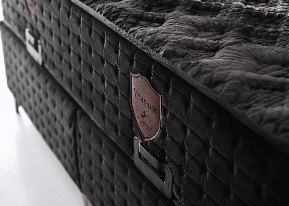 Комплект луксозна тапицирана спалня Versage и матрак Versage, който е снабден с луксозна дизайнерска дамаска. Може да се поръча и изработи в 18 цвята и 9 размера, като единично детско легло и двойно спално легло.