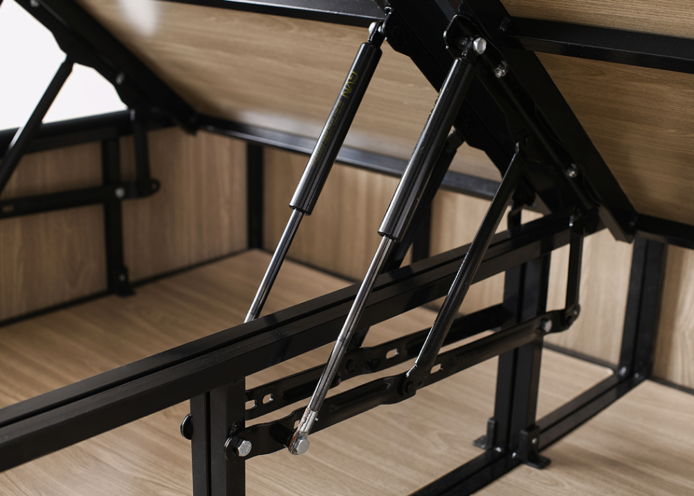 • Повдигащ механизъм от 2бр/4бр газови амортисьори /2х2/ по 750N, има спирачка на механизма която може да се ползва когато механизма е отворен.