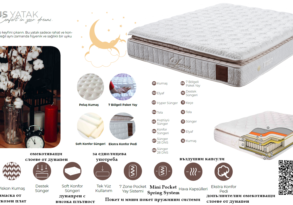 - Матрак Lexus с двуслойно пружинно ядро, в комбинация между Pocket пружинна система и Mini Pocket пружинна система.