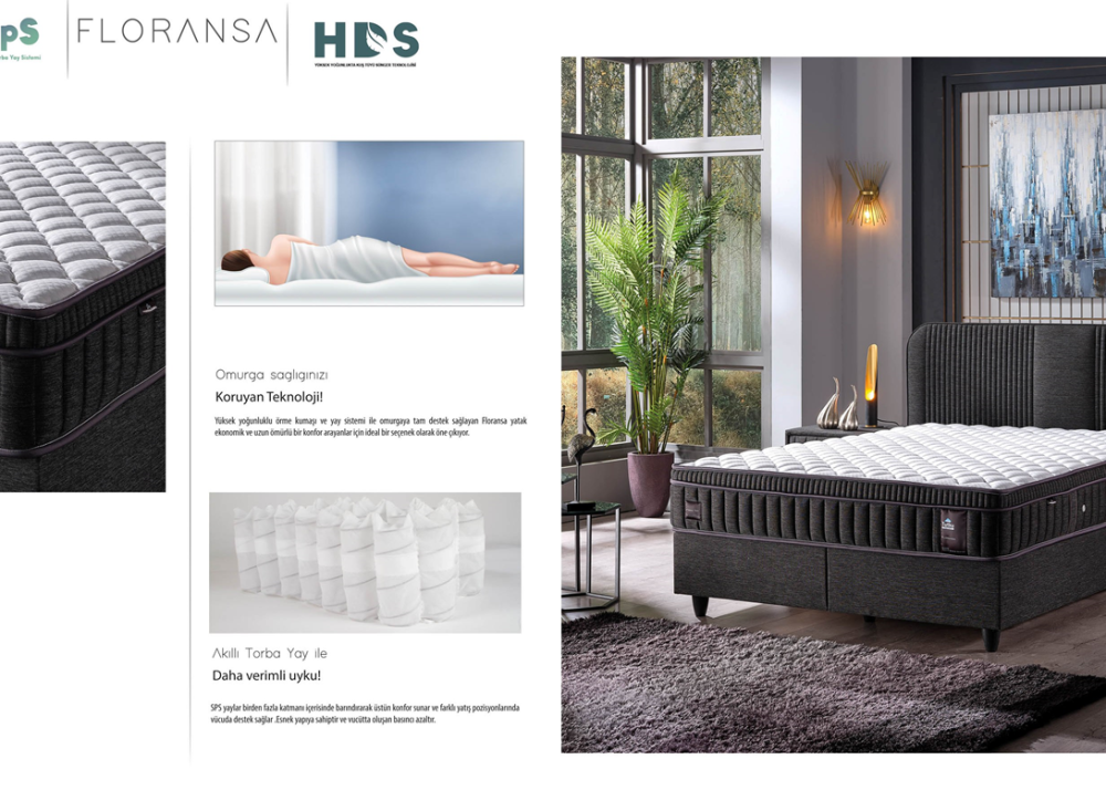 Матрак Floransa Ergonomik е с ядро от pocket пружинна система – SPS Spring System. Добавени са омекотяващи слоеве от висококачествени дунапрен с висока плътност, HDH пяна, вата и силиконизирани влакна. Пружинната SPS pocket пружинна система, HDH пяната и добавените допълнителни омекотяващи слоеве, допринасят матрака да остане непокътнат от натиска на тялото и осигурява дълготрайна издръжливост, комфорт и естествени движения на тялото по време на сън. Матрак Floransa Ergonomik е снабден с дизайнерска дишаща дамаска, която предотвратява изпотяването благодарение на въздушните канали по цялата повърхност.