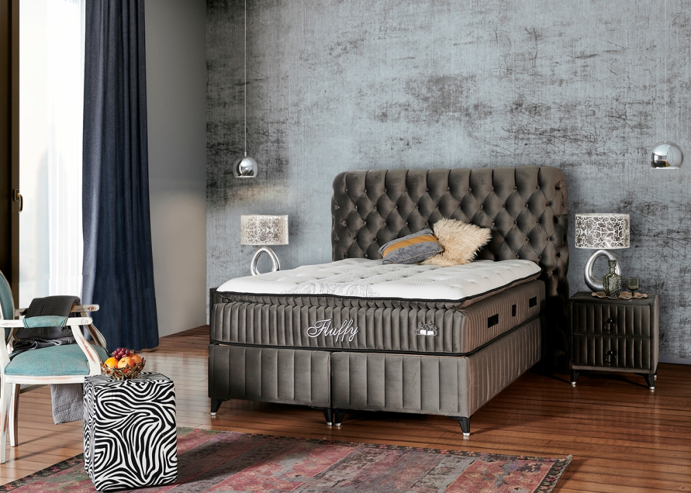 Тапицирано легло Fluffy е част от колекцията на доказалия се Турски производител на мебели и матраци Tutku Yatak.