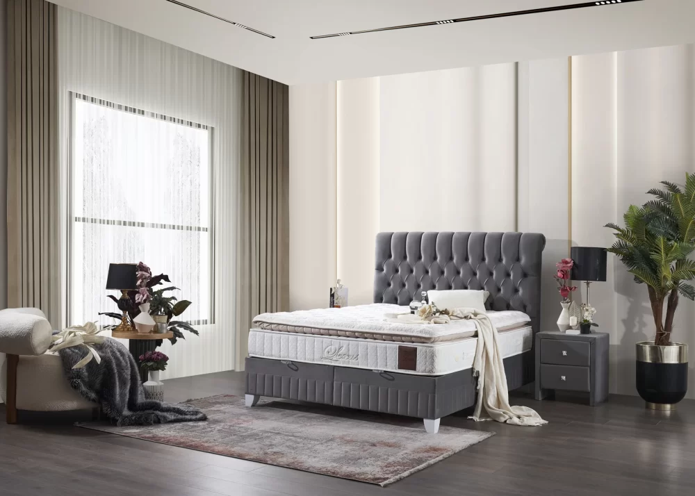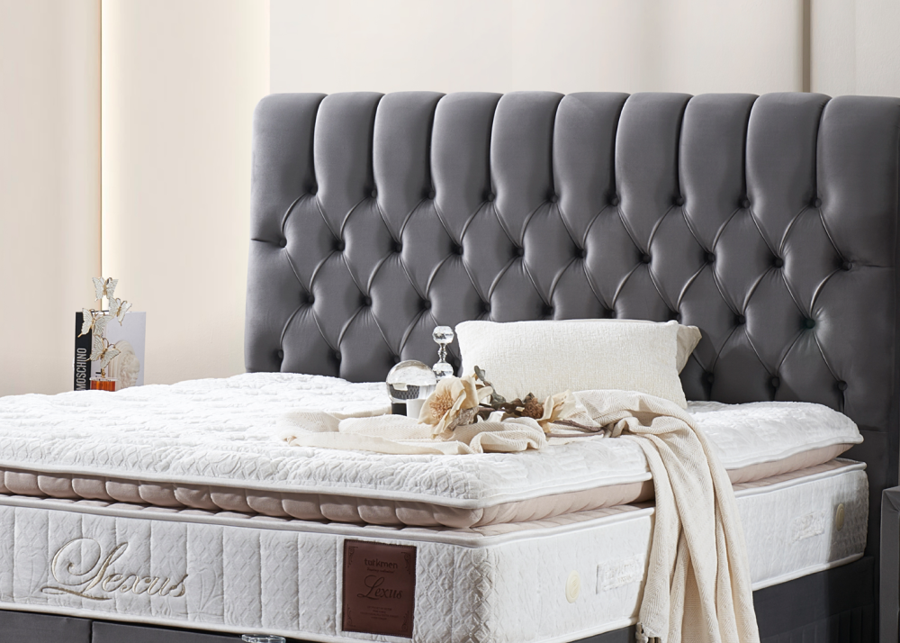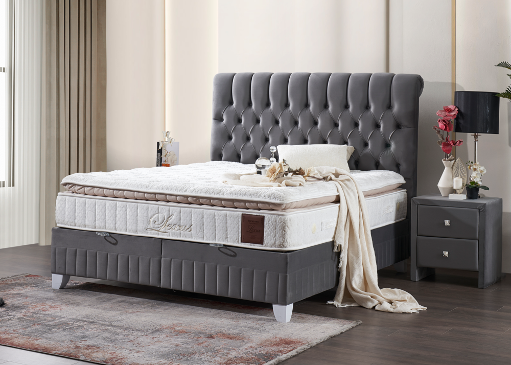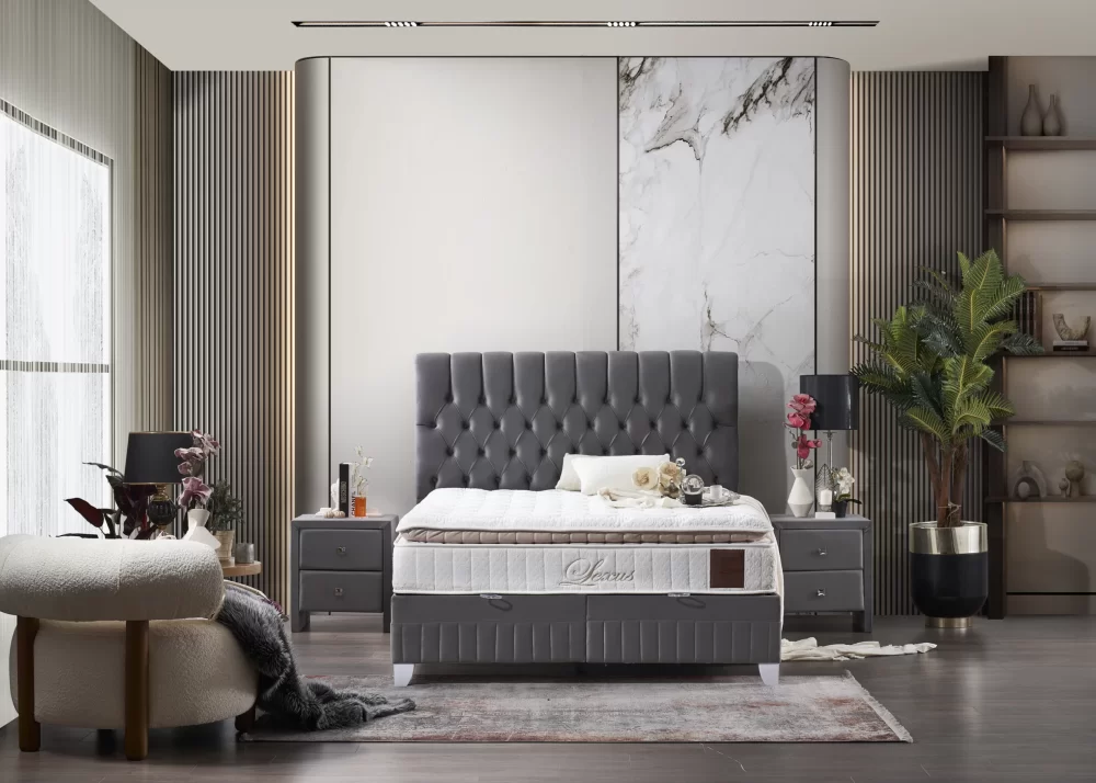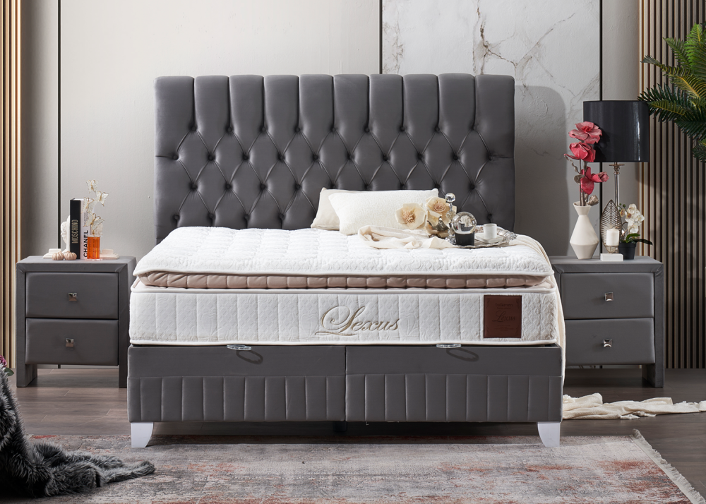 Тапицирано легло Lexus в цвят Платинено Сиво, комплект с матрак Lexus и повдигаща се подматрачна рамка. Матрак Lexus е снабден с комфортен прошит топ матрак и дизайнерска дамаска от вискозен плат Viscose fabric. Може да се закупи и без матрак. Тапицирано легло Lexus се предлага в 2 цвята и 10 размера.