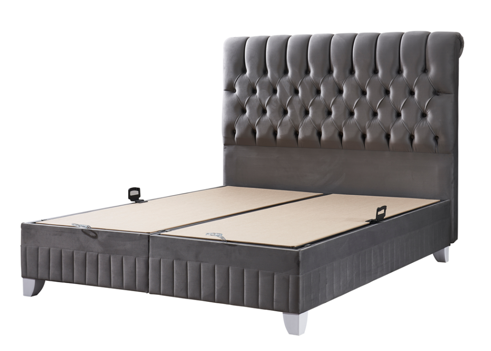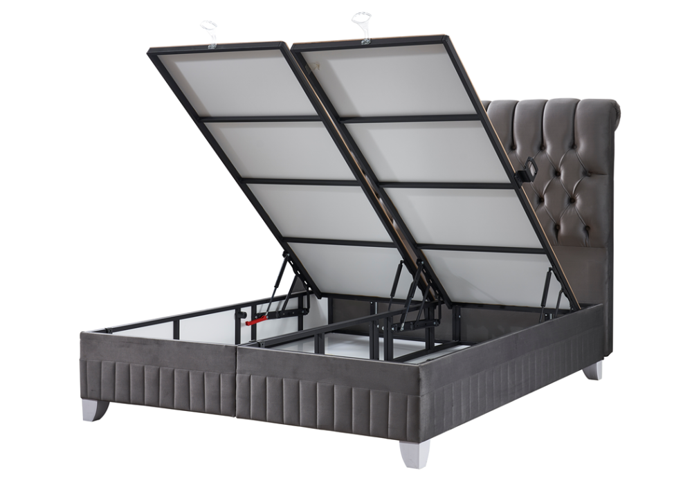 Тапицираното легло се доставя разглобено, много добре пакетирано с велпапе и найлон на 3 части + матрака. Лесна за монтаж – табла, лява основа и дясна основа, които трябва да се сглобят (повдигащите подматрачни рамки с амортисьорите са сглобени фабрично). След сглобяването на 3-те основни модулни елемента, остава да се постави матрака.