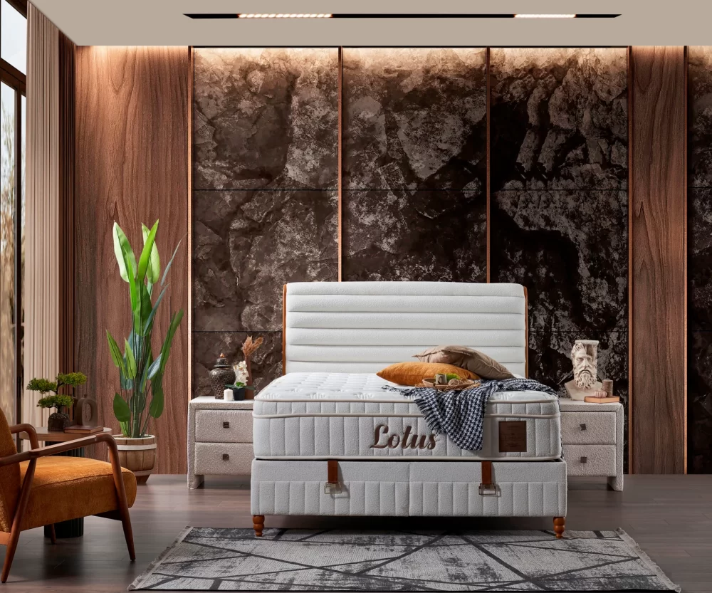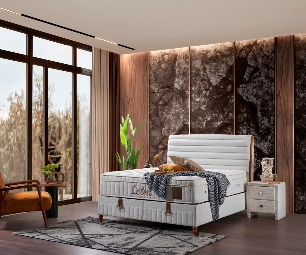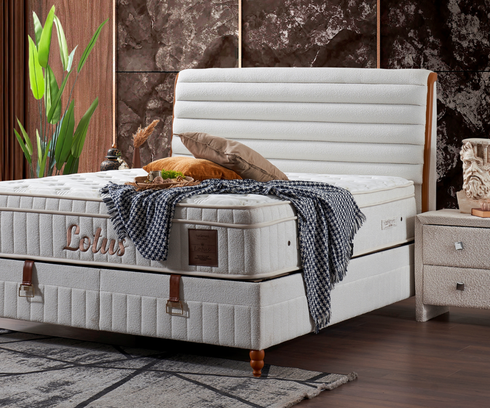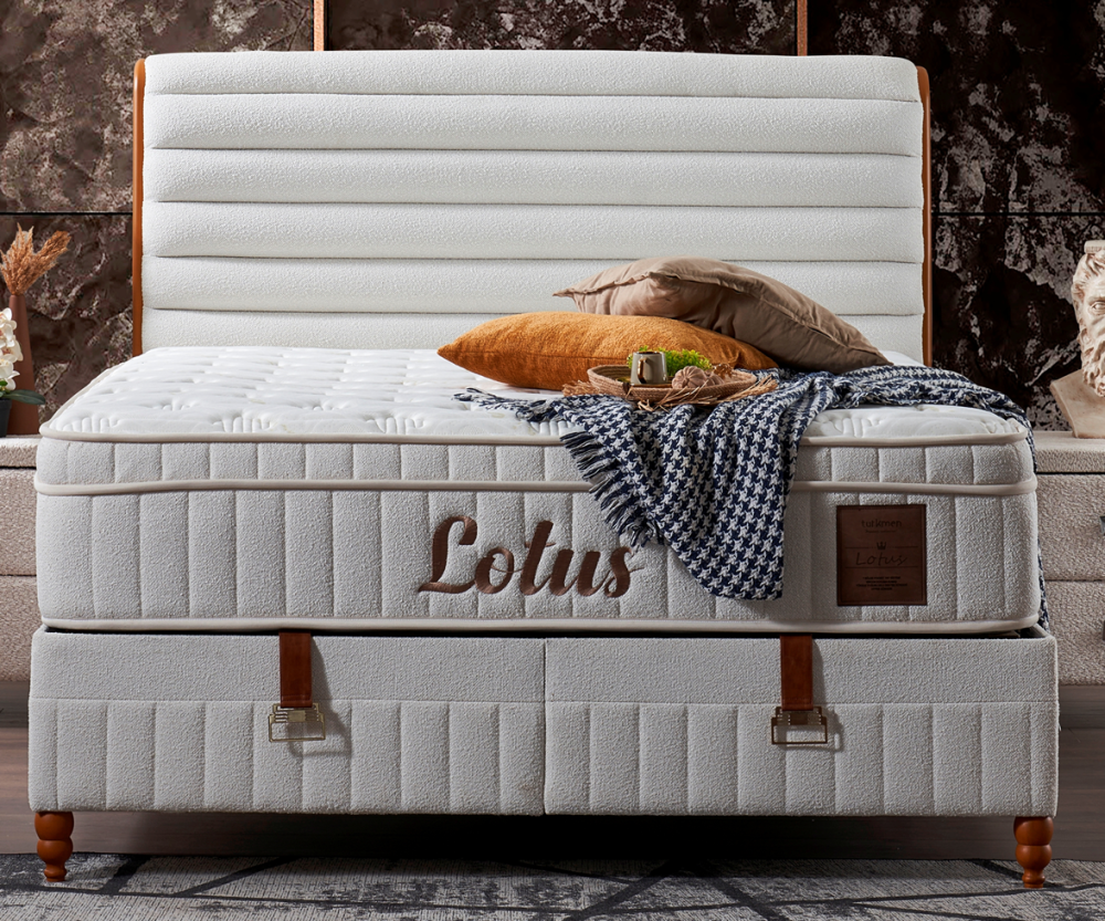 Тапицирано легло Lotus Türkmen е с луксозна капитонирана табла и основа, в стилен дизайн с добавени декоративни лайсни в дървесен декор. Тапицирано легло Lotus се предлага в 10 размера. Тапицирано легло Lotus е модулно, готов вариант в комплект с капитонирана табла, капитонирана основа и нов модел повдигаща се подматрачна рамка. Може да се закупи и с матрак – тапицирано легло Lotus с матрак Lotus.