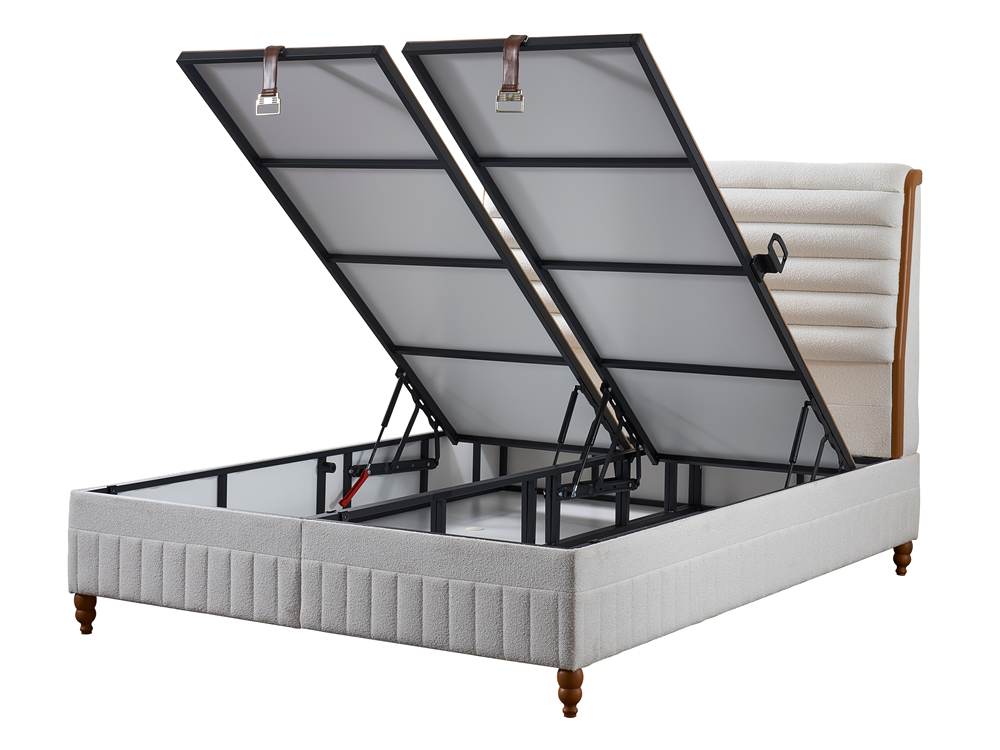 - Базата е снабдена с дъно и нов модел повдигаща система от 1бр (за единичните размери) / 2бр метална подматрачна рамка с цял ламиниран ПДЧ панел. Рамката е оборудвана с 2бр / 4бр газови амортисьори /2х2/ по 750N, може да се повдига всяка основа по отделно или заедно, има спирачка на механизма, която може да се ползва когато механизма е отворен. На дъното и рамката са монтирани вентилационни капачки. Основата предоставя голямо празно подматрачно пространство, подходящо за съхранение на спални завивки и други вещи.