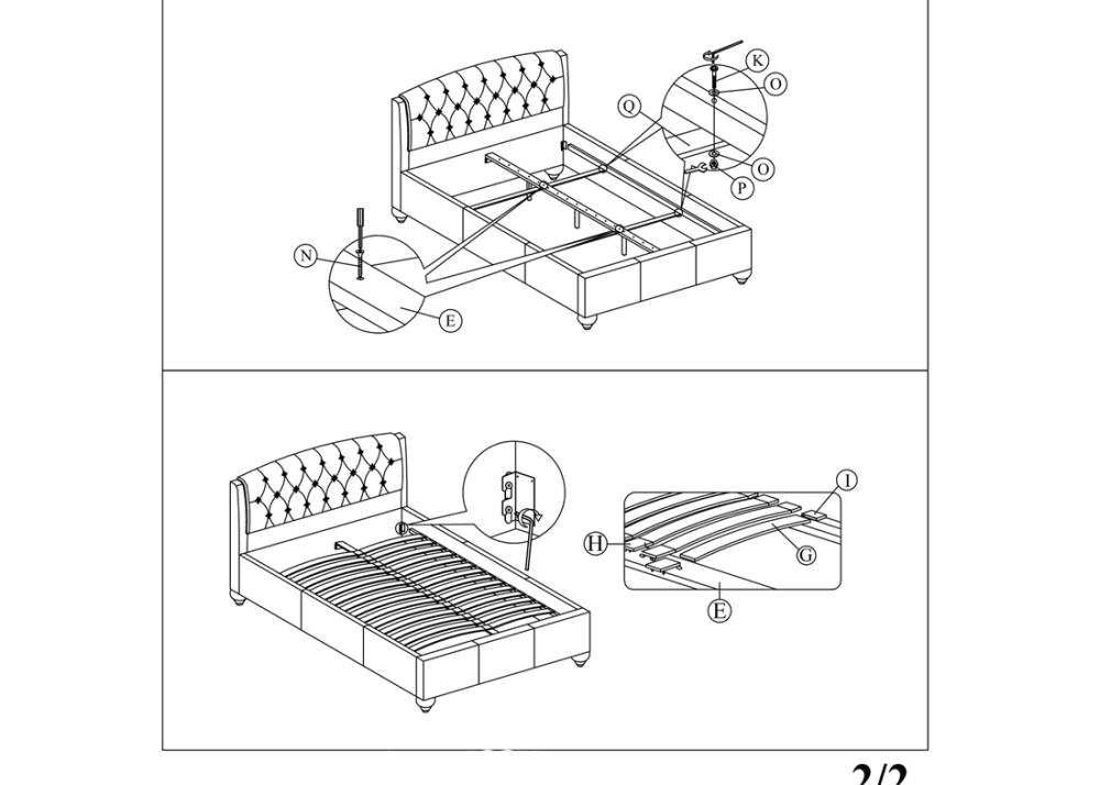 - Габаритни размери на леглото Ш/Д/В: 172/220/108см.