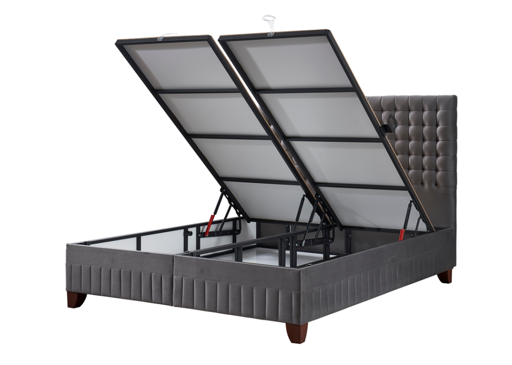 - Базата е снабдена с дъно и нов модел повдигаща система от 1бр (за единичните размери) / 2бр метална подматрачна рамка с цял ламиниран ПДЧ панел. Рамката е оборудвана с 2бр / 4бр газови амортисьори /2х2/ по 750N, може да се повдига всяка основа по отделно или заедно, има спирачка на механизма, която може да се ползва когато механизма е отворен. На дъното и рамката са монтирани вентилационни капачки. Основата предоставя голямо празно подматрачно пространство, подходящо за съхранение на спални завивки и други вещи.