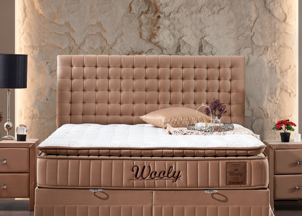 - Матрак Wooly е снабден комфортен прошит топ матрак и дизайнерска плюшена дамаска от 100% естествена чиста вълна.