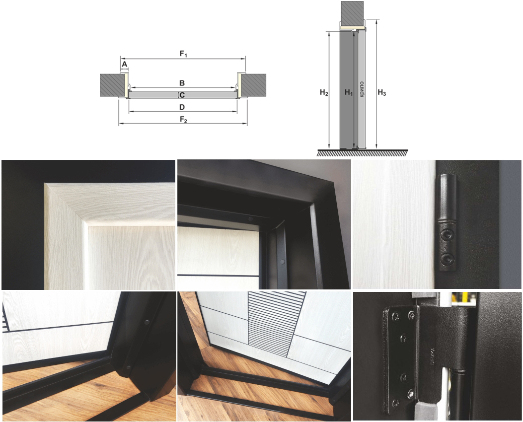 - Изцяло облечена с MDF регулируема каса (по дизайн и цвят на крилото) – за зид 210мм до 320мм (по желание на клиента, цената на вратата с този модел каса се оскъпява с 300лв);