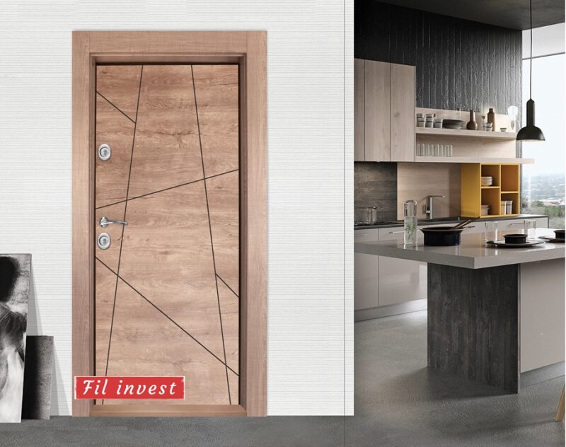 Блиндирана врата Модерн модел Т-1003 е здрава и устойчива входна врата, с MDF фрезовани панели с ламинирано покритие, част от колекцията на блиндирани врати Kartal !