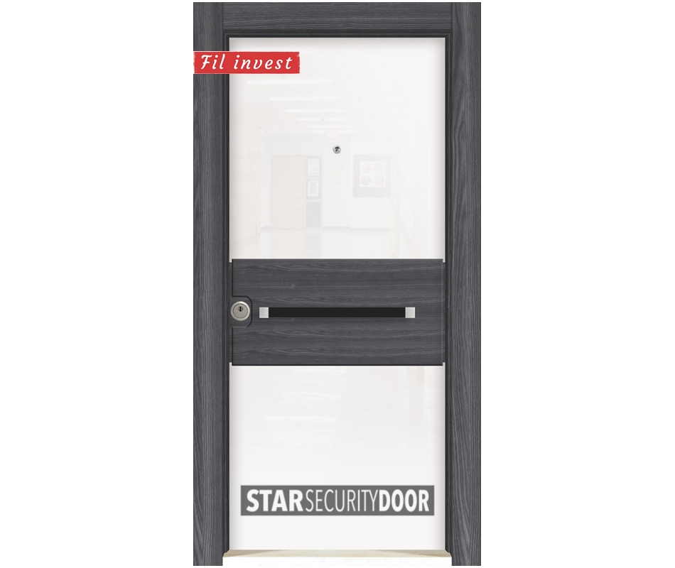 Врата Star Security Door серия Crystal модел CR5057 Бял караагач е луксозна и качествена блиндирана врата в модерен дизайн, част от колекцията на входни врати Star Security Door.
