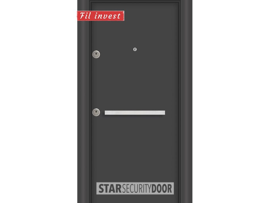 • Качествена блиндирана врата, в стилен изчистен дизайн, със стилна сатенена външна дръжка. Подходяща и за външен монтаж.