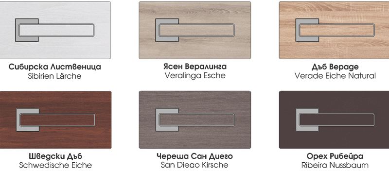 Дръжка ADEN за врати Gradde Орех Рибейра, е от по висок клас, в модерен дизайн, с възможност да се избере дръжка с лента в цвят на избраната вратата .