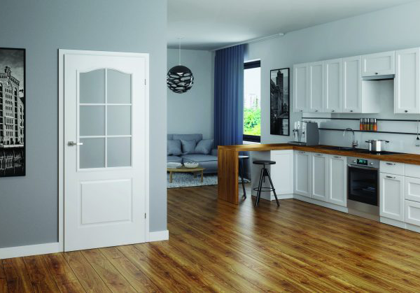 Интериорна врата модел CLASSIC 2-3 е модерна и стилна по дизайн на КрафтМастер, с красиво остъклено крило и релефни орнаменти, здрава и устойчива Полска интериорна врата, част от колекцията на врати Classen.