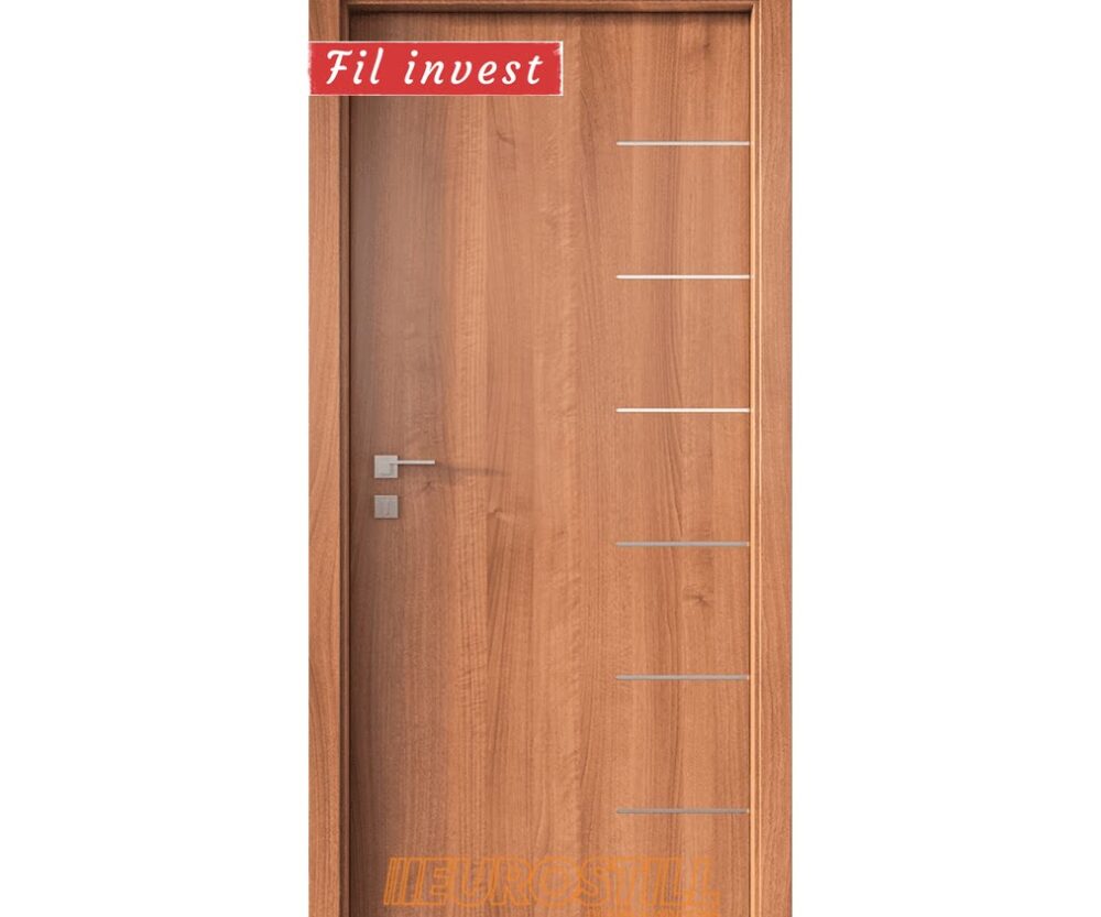 Всички модели от серия Silver могат да се изработят и като плъзгащи или сгъваеми врати ! Крилото е с профил SF, изработват се от качествени и устойчиви МДФ / HDF материали, по немска технология, в модерен дизайн с добавени красиви декоративни лайсни. Лайсните не са по цялата хоризонтала или вертикала на крилото, а завършват със заобляне, могат да бъдат разположени на крилото в най-различни варианти, по желание на клиента. Структурата на крилото представлява сандвич-конструкция, съставена от рамка от масивна дървесина, облицовъчни листове от HDF със стандартен пълнеж „Пчелна пита”. Пчелна пита – хартиен клетъчен пълнеж, с формата на шестоъгълни клетки с дължина на страната 25-30мм и дебелина на хартията 0.2-0.4мм. Профила на крилото е SF – крило без фалц, наравно с перваза. В базовата окомплектовка е включена каса Sofia, тя се изработва от МДФ материал с покритие и цветова гама спрямо покритието и цвета на крилото. Каса Sofia е права каса с дебелина 22мм, с прави первази с широчина 70мм, свързани на 45 градуса. Каса Sofia обхваща зидове : В базовото изпълнение и посочената главна цена за интериорна врата Silver модел 6S е с покритие декоративно фолио. Декоративното фолио представлява предварително импрегнирано с термовтвърдяващи се смоли и лакирано покритие, подходящо за мебели, врати, стенни панели и т.н. Декоративното фолио може да се изпълни в цветове по избор от : В главна цена за интериорна врата Silver модел 6S окомлектовката включва: Забележка! В окомплектовката НЕ СА включени дръжки. Крило с профил SF представлява крило без фалц, което е наравно с перваза. Крило с профил ST представлява, крило с прав фалц над перваза. Крило с профил SYM представлява, “скрит фалц” – крило с прав фалц, наравно с перваза. Каса Sofia – права каса с дебелина 22мм, с прави первази с широчина 70мм, свързани на 45 градуса. Каса Roma е права каса с дебелина 22мм, с полу-обли первази с широчина 70мм, свързани на 45 градуса. Каса Optima е права каса с дебелина 40мм, с прави первази. Первазите могат да бъдат свързани на 90 или на 45 градуса. Каса Milano е права каса с дебелина 40мм, с прави первази с широчина 70мм откъм панти и 100мм откъм каса, свързани на 90 градуса. Каса Frankfurt е обла каса с дебелина 44мм, с обли первази с широчина 70мм, свъразни на 45 градуса. Каса Sfera е oбла каса с дебелина 40мм, с обли первази с широчина 70мм, свързани на 90 градуса. Декоративното фолио представлява предварително импрегнирано с термовтвърдяващи се смоли и лакирано покритие, подходящо за мебели, врати, стенни панели и т.н. Декоративното фолио може да се изпълни в цветове по избор от : Структурно релефно декоративно покритие е декоративно фолио с релефна структура, имитиращо естествените дървесни декори, с оптимално съотношение качество-цена. Изключително подходящо за жилищни сгради. Структурното релефно фолио може да се изпълни в цветове по избор от : Покритие Alkor е подходящо декоративно покритие за вътрешна употреба. Изключителните предимства на този материал са – комбинацията от специален печат и техника на щамповане, с дълбока структура на порите и печатен дизайн, които са перфектно съчетани. Покритие Боя Мат RAL – включва голямо разнообразие от цветове за всеки вкус. Това покритие дава уникален стил и атмосфера на всеки дом. С прилагането на съвременни технологии, боядисаната повърхност е устойчива на влага и механични травми. Предлага се в цв
