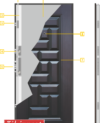 Метална каса от подсилен метал, с дебелина 90мм., необходим отвор за монтаж – 920/1990 мм., с машинно поставено топлопренесено PVC-фолио, фиксирана каса с гумени уплътнения и первази от едната страна..
