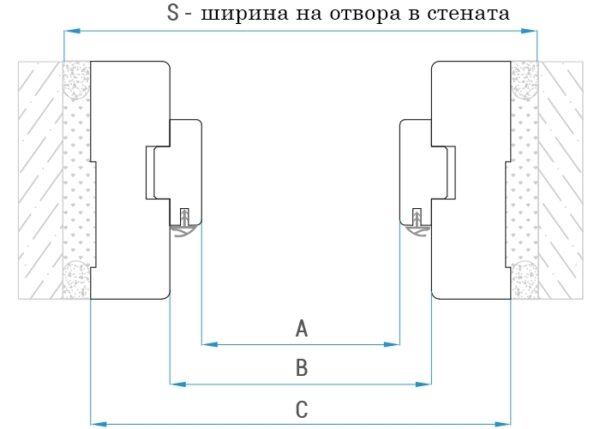 - Широчина на строителния отвор 70-71′, 80-81′, 90-91′, 100-101’см.
