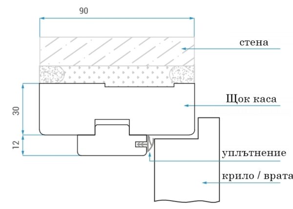 Стандартна каса Щок за крило с размери – 60′;70′;80′;90′см, две панти, гумени уплътнения, монтажен комплект.