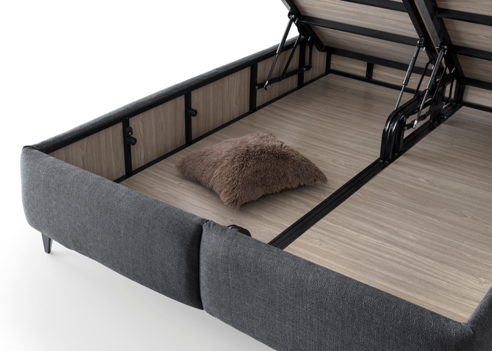 - Спалнята е лесна за монтаж – табла, лява основа и дясна основа, които трябва да се сглобят (повдигащите подматрачни рамки с амортисьорите са сглобени фабрично).