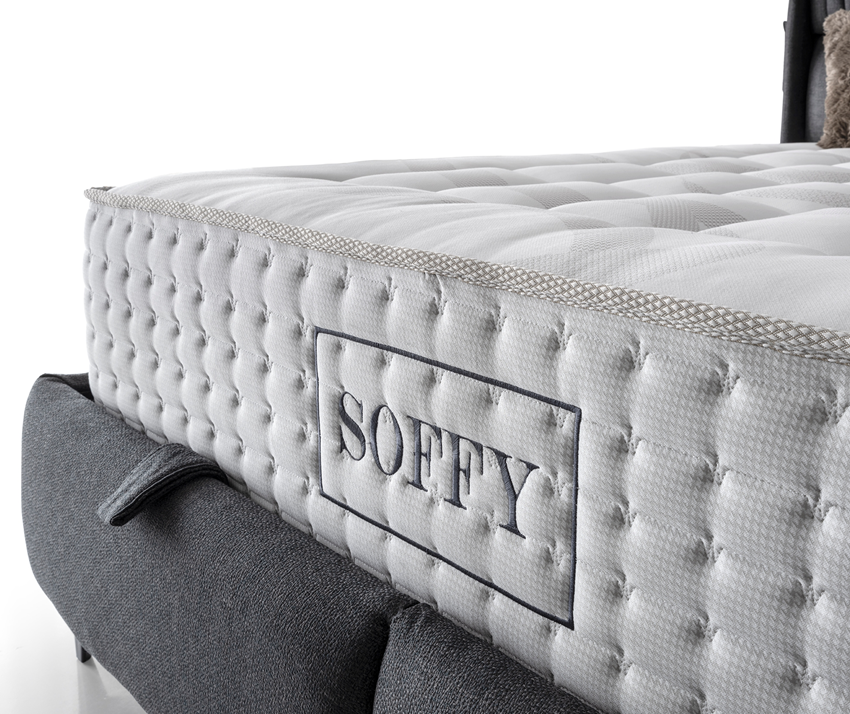 Матрак Soffy е с ядро от Bonel / Бонел DCS динамична пружинна система. Добавени са допълнителни омекотяващи слоеве от висококачествени дунапрен с висока плътност, ортопедична пяна, вата и силиконизирани влакна. Матрак с балансираща система, която защитава извивките на гръбначния стълб, като поддържа кръста, гърба, главата, врата и областта на коленете.