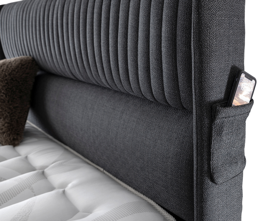 - Капитонираната таблата е с прошити странични джобове за телефон.