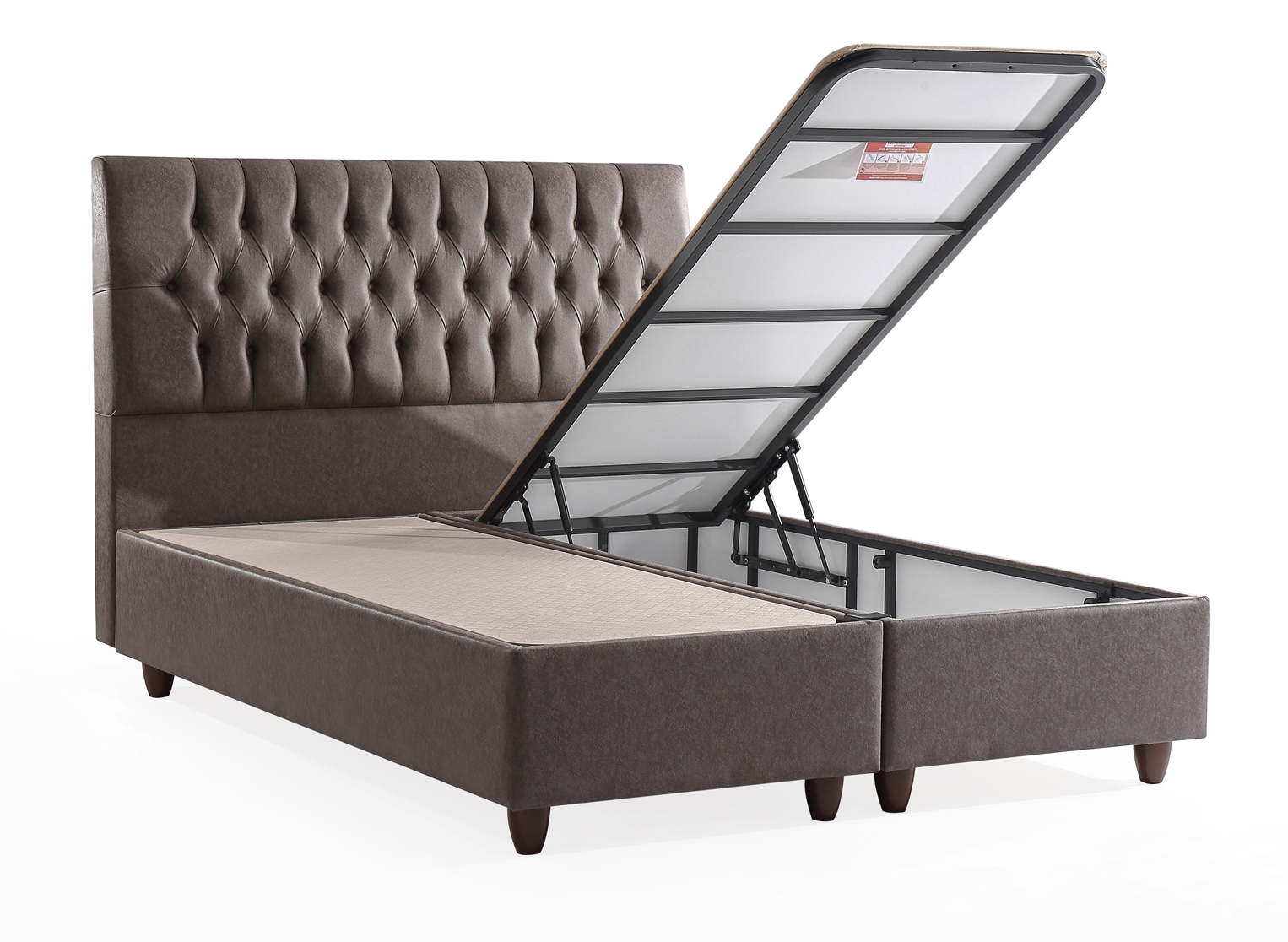 Моделът разполага с елегантна капитонирана табла и тапицирана основа с вградена повдигаща се подматрачна система с газови амортисьори, която осигурява просторно и практично място за съхранение на завивки, възглавници, спално бельо и други вещи.