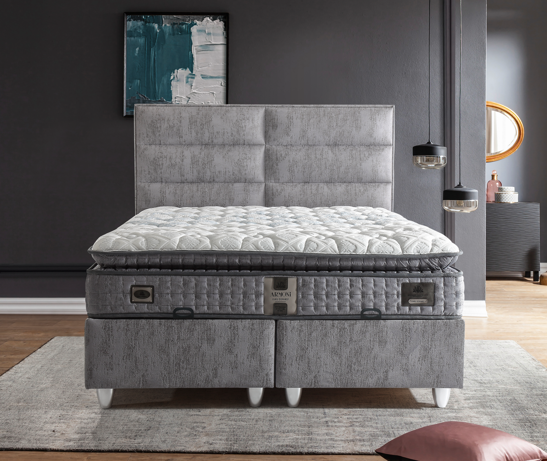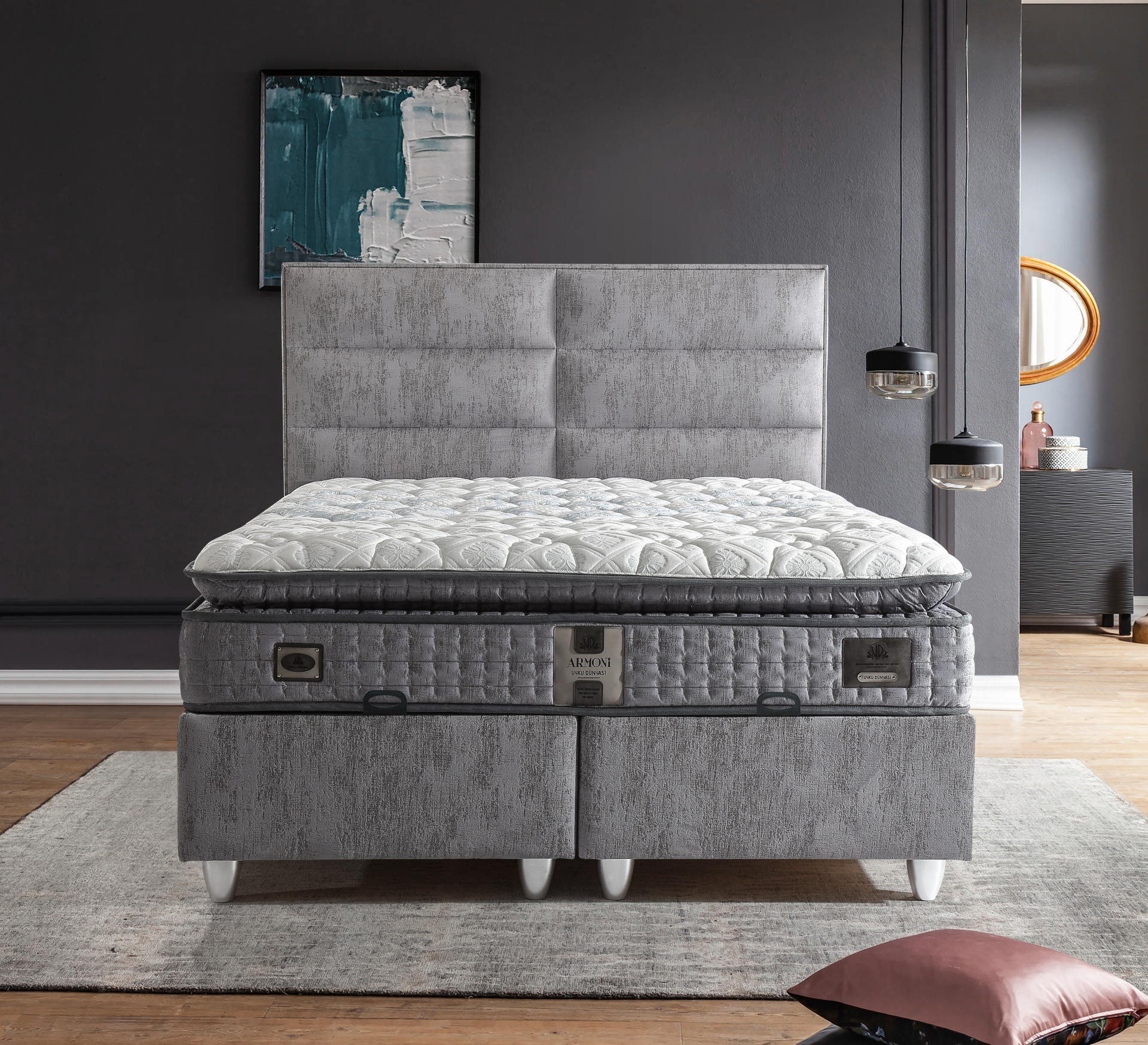 - Матракът Armoni разполага с удобен прошит топ матрак и двуслойно пружинно ядро, съставено от един ред Bonnell Spring пружинна система и втори ред Mini Pocket Spring пружини, всяка от които е обвита с борд от дунапрен с висока плътност. Добавени са омекотяващи слоеве от дунапрен, мека пяна и HR пяна, които осигуряват стабилност, ортопедична опора и дълготраен комфорт по време на сън. Завършен е с луксозна дишаща дамаска Knitted Fabrik, която съчетава стил, проветривост и естетика, подходяща за всяка модерна спалня.