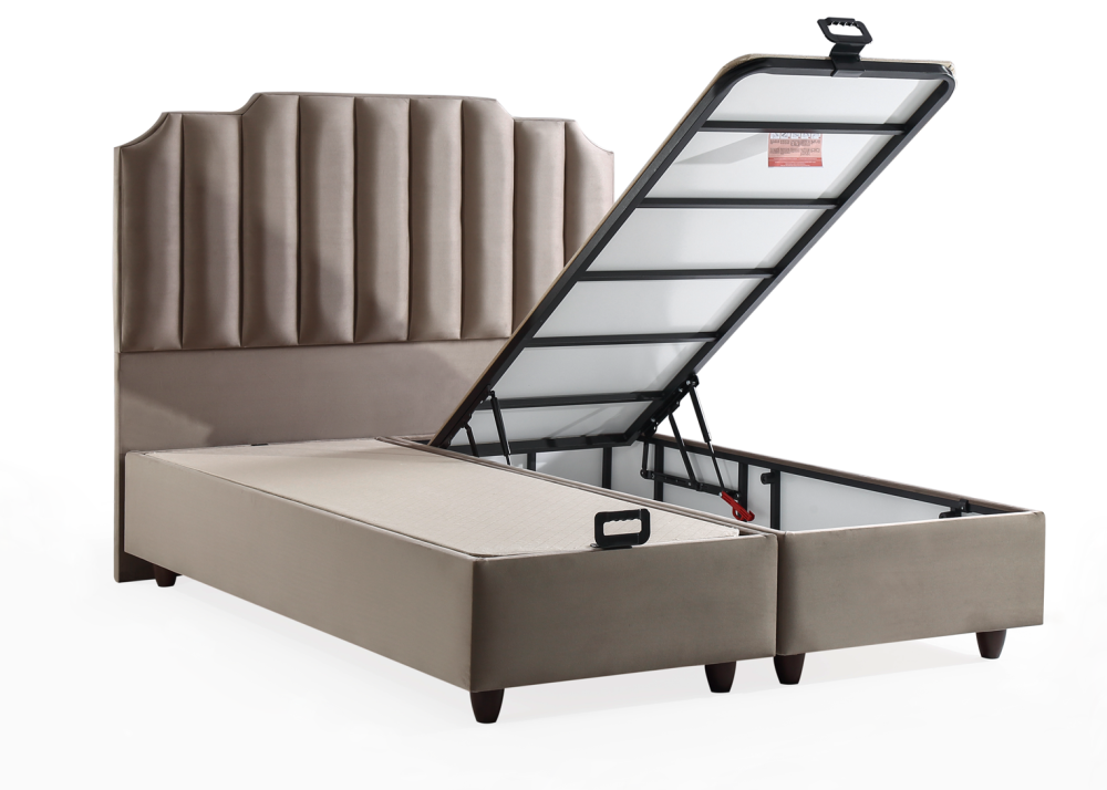 - Основата разполага с вградено дъно и повдигаща се подматрачна система, състояща се от една подматрачна рамка при единичните размери и две подматрачни рамки при двойните размери. Всички рамки са оборудвани с газови амортисьори и спирачка на механизма, която фиксира рамката в отворено положение за по-безопасно и удобно използване. За допълнителна проветривост и защита от влага са монтирани вентилационни капачки.
