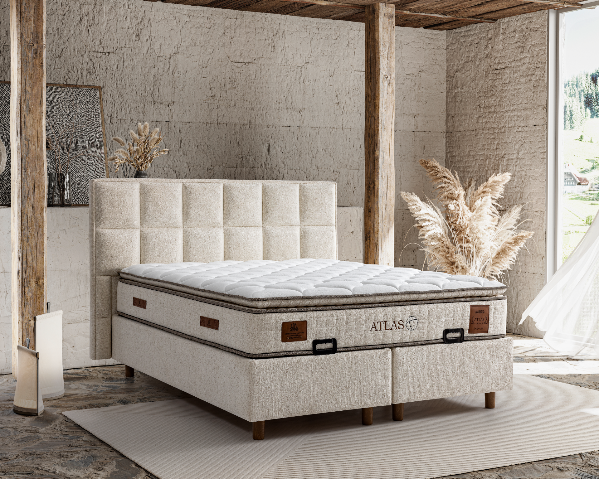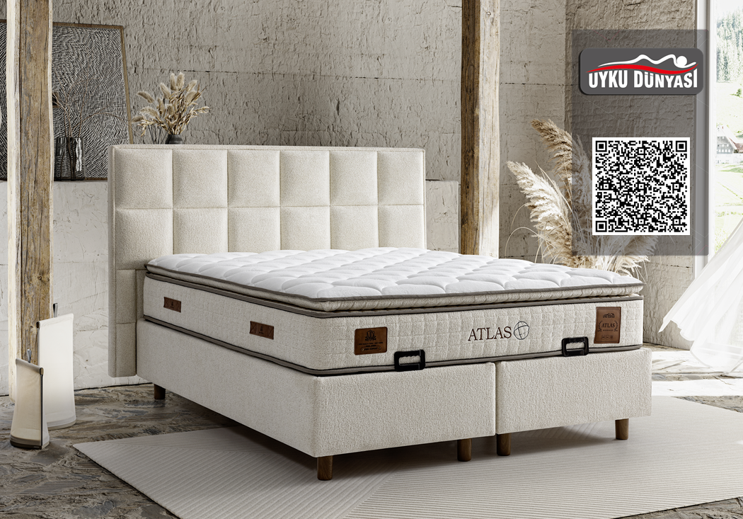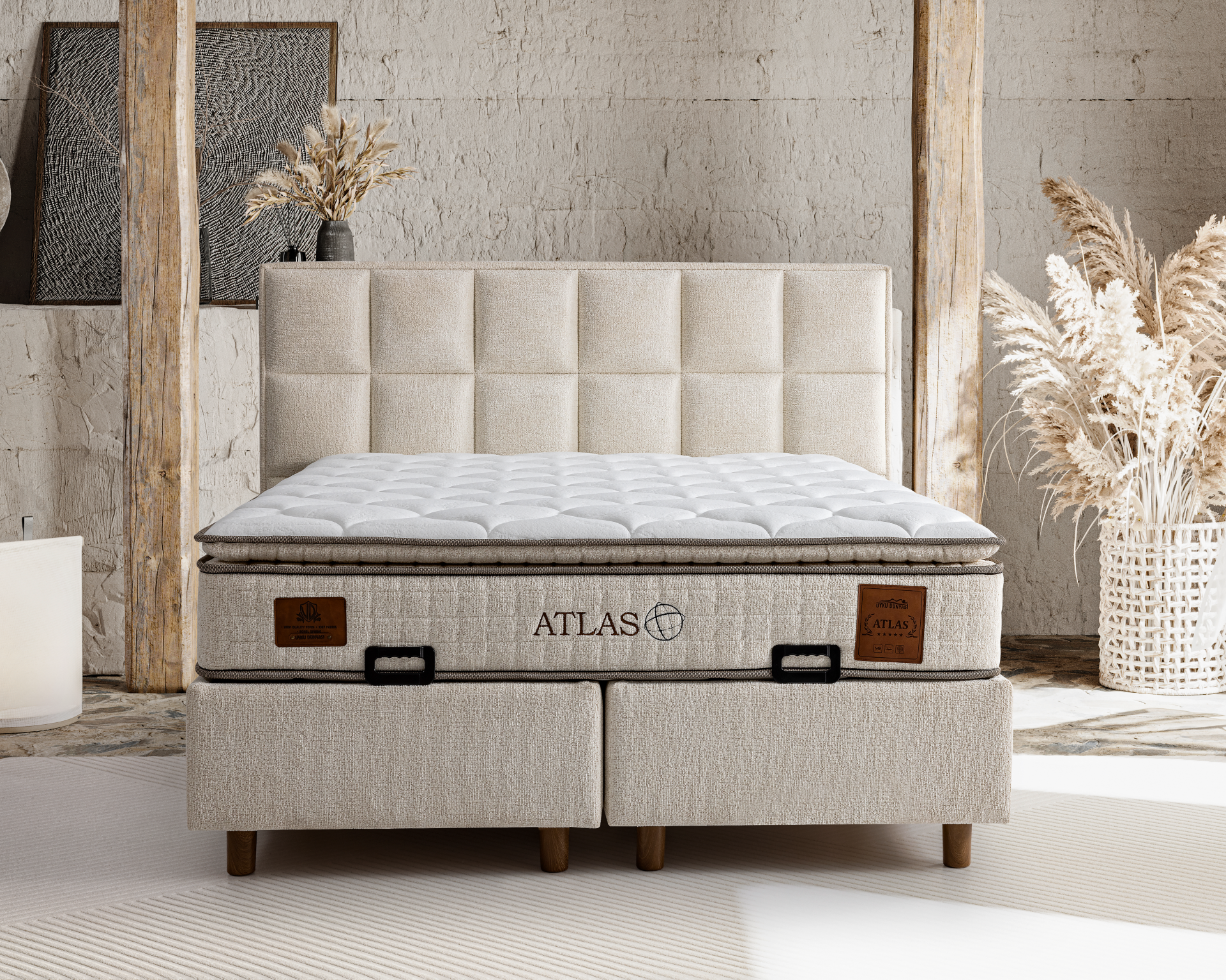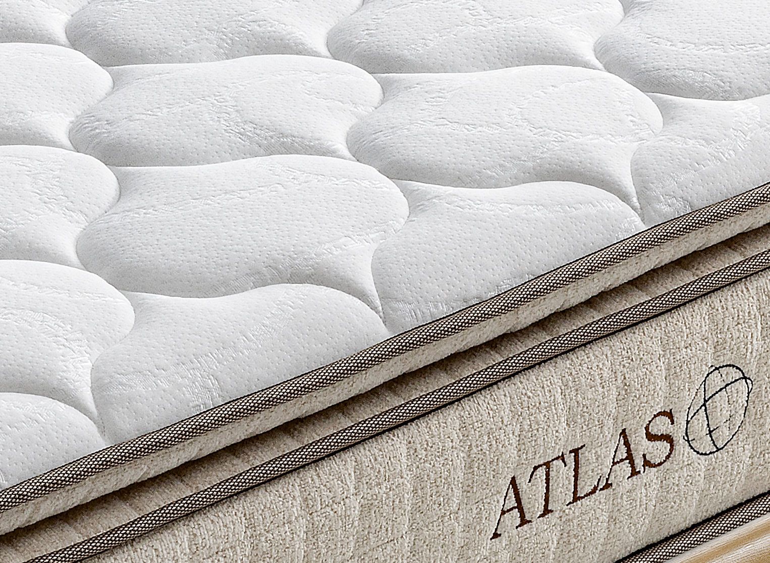 • Матрак Atlas е снабден комфортен прошит топ матрак и дишаща дизайнерска дамаска Knitted Fabrik.