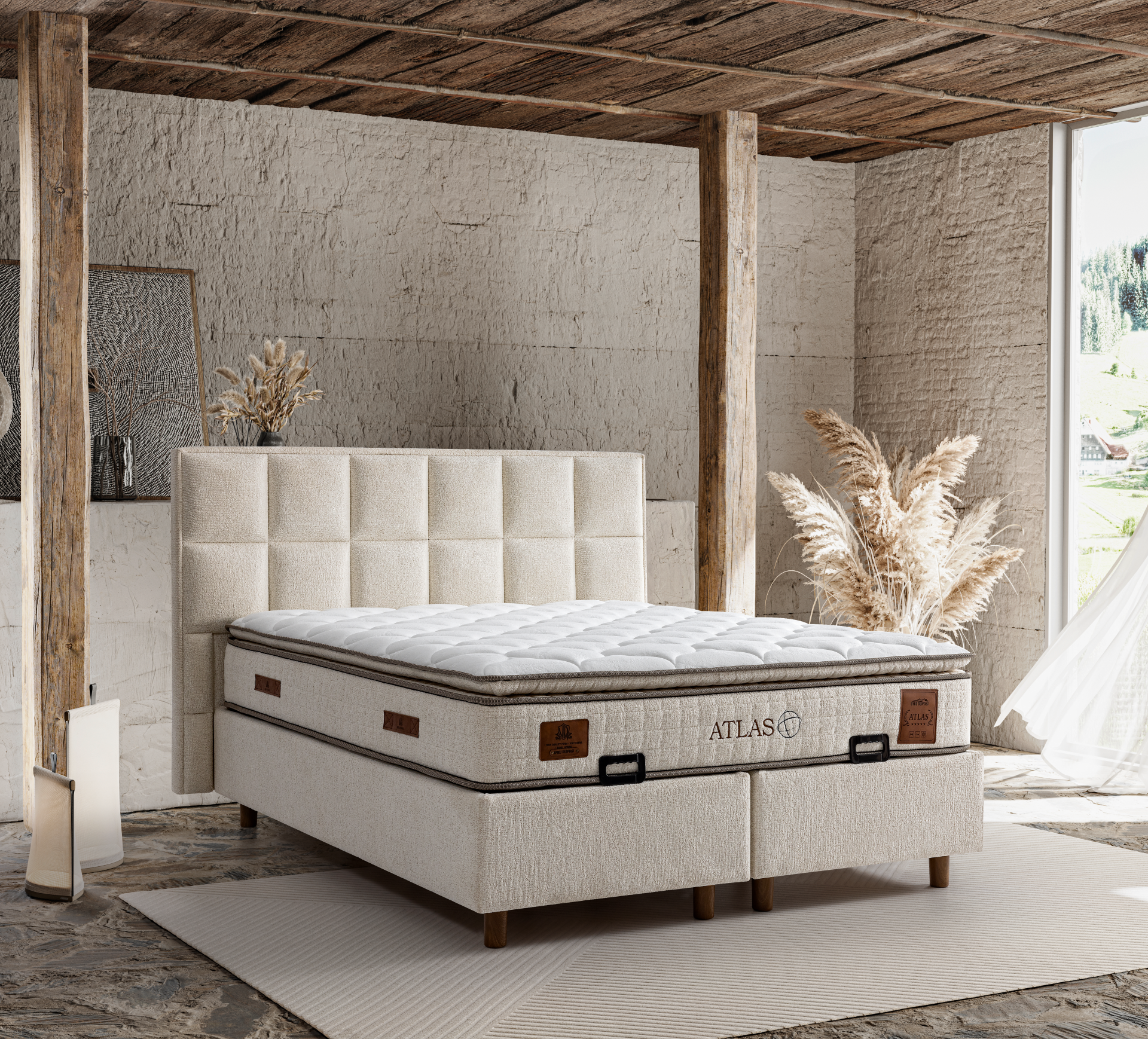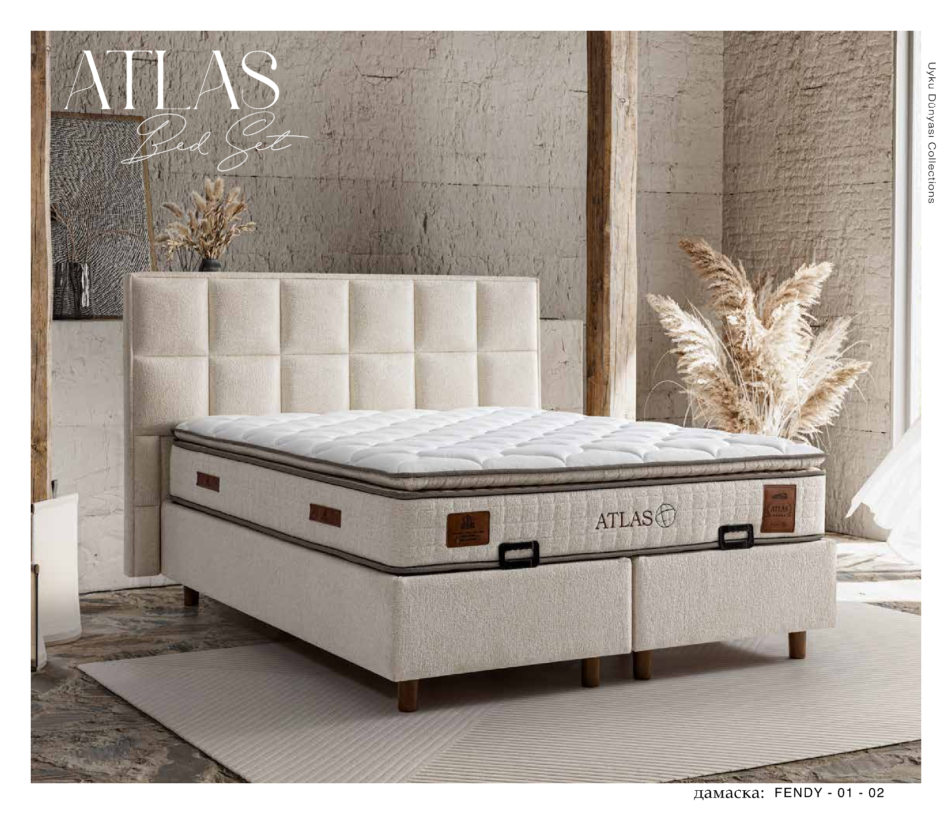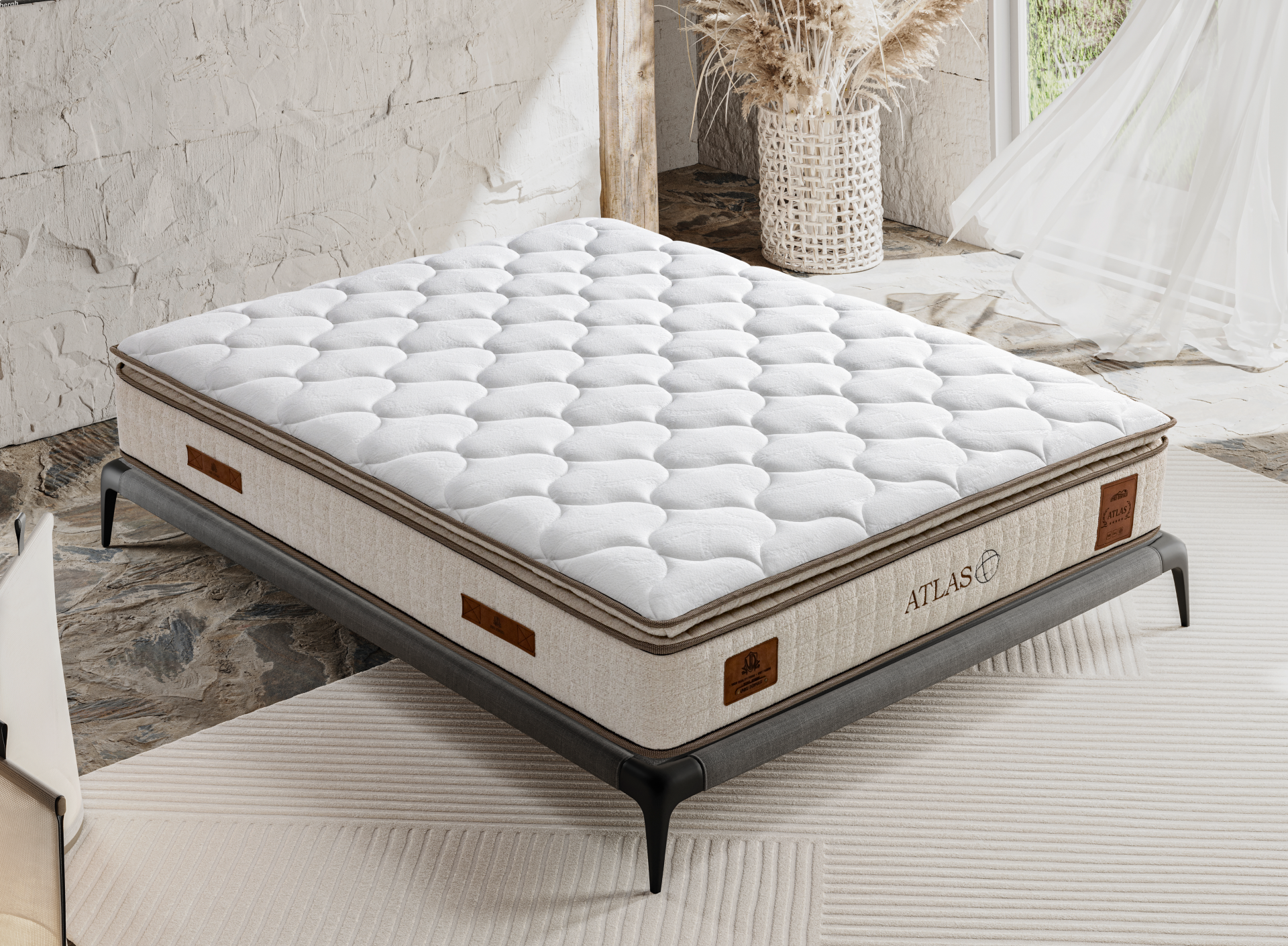 • Матрак Atlas е снабден комфортен прошит топ матрак и дишаща дизайнерска дамаска Knitted Fabrik.