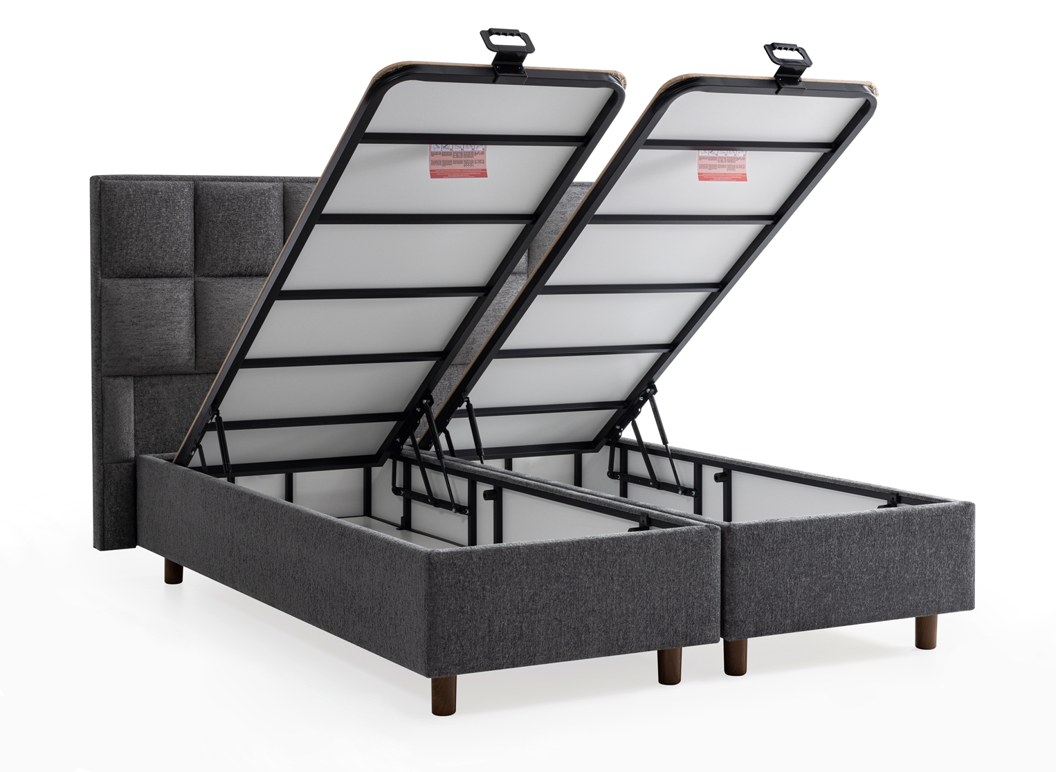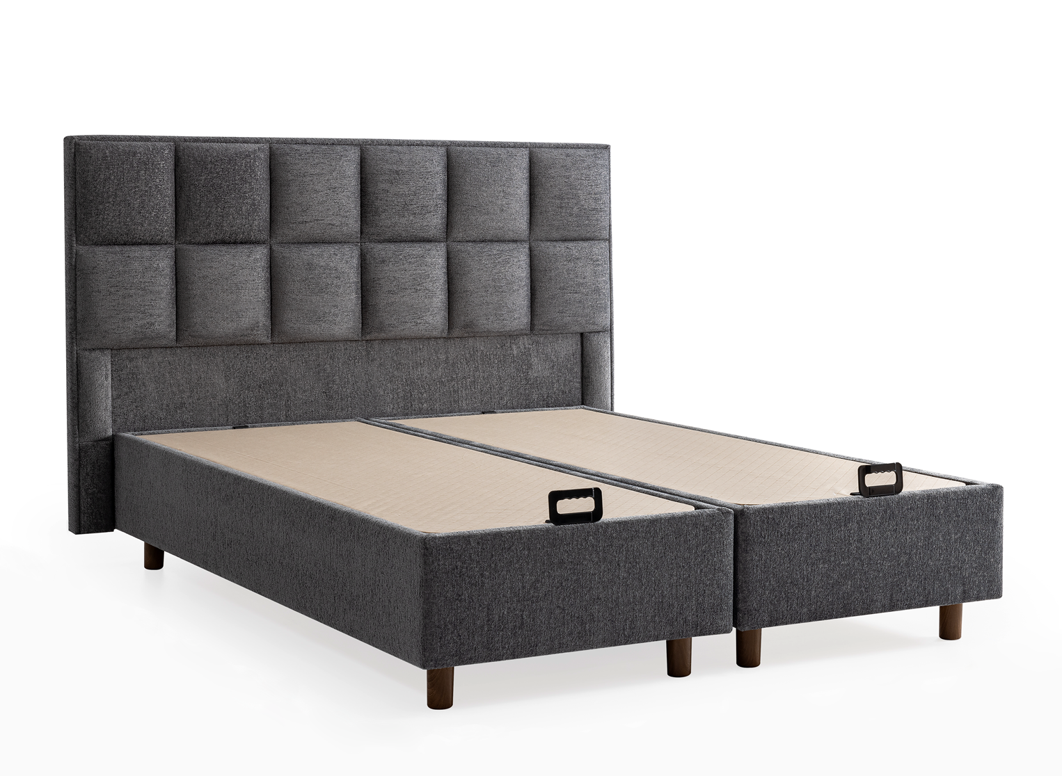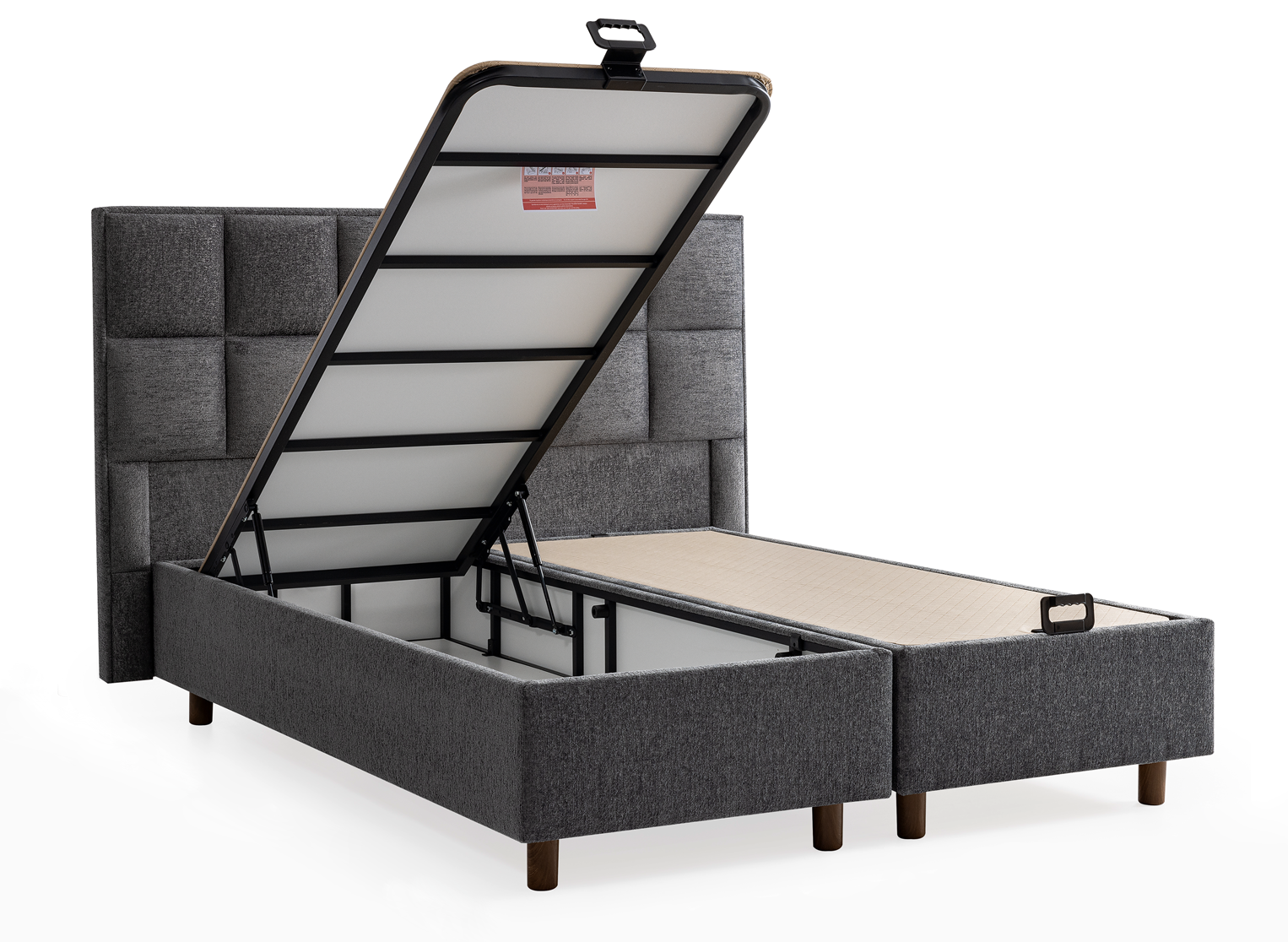 Тапицирано легло Atlas в цвят Графитено сиво, разполага с модерна капитонирана табла и основа оборудвана с вградена повдигаща се подматрачна система. Предлага се с опция за покупка без матрак или в комплект с матрак Atlas.
