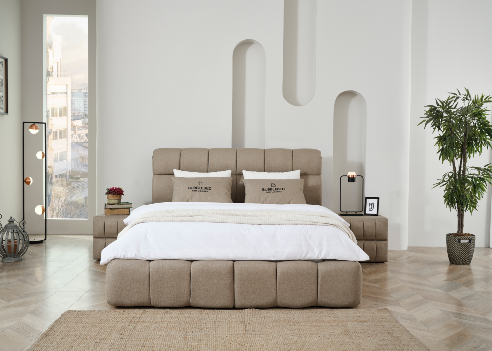 Тапицираното легло Bubble е модулен модел, съчетаващ стилен дизайн, практичност и комфорт. Включва капитонирана табла и основа с вградена подматрачна рамка, снабдена с газови амортисьори и просторно място за съхранение на спално бельо, завивки и други вещи..