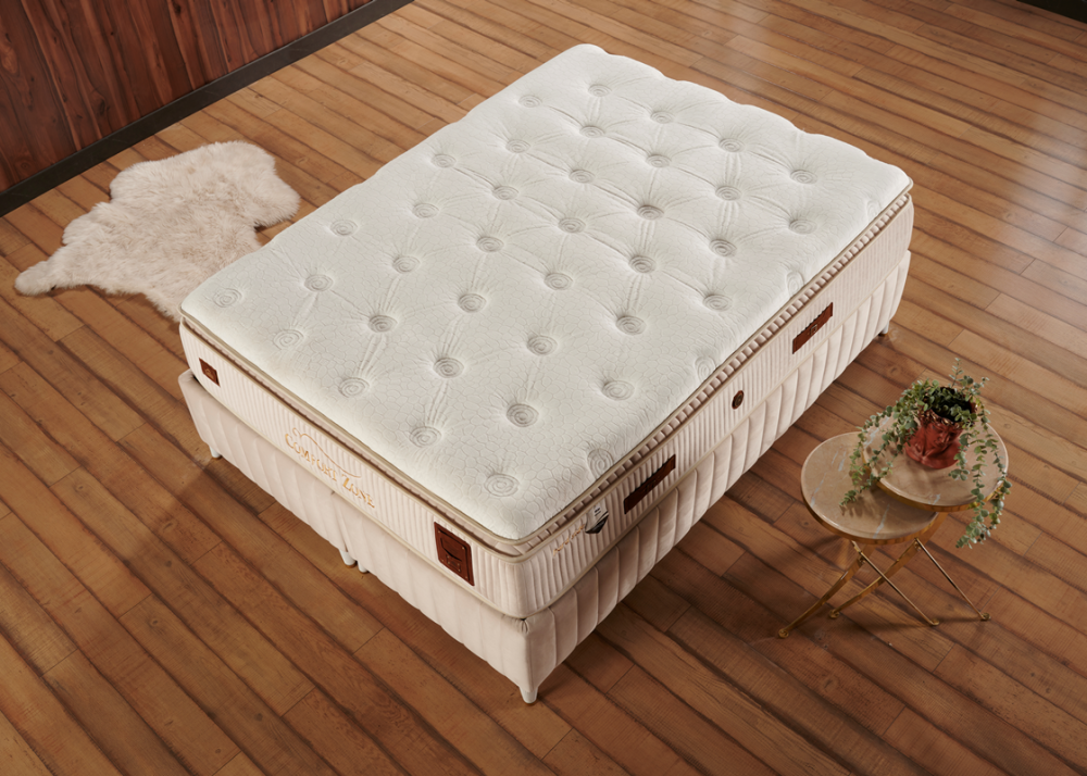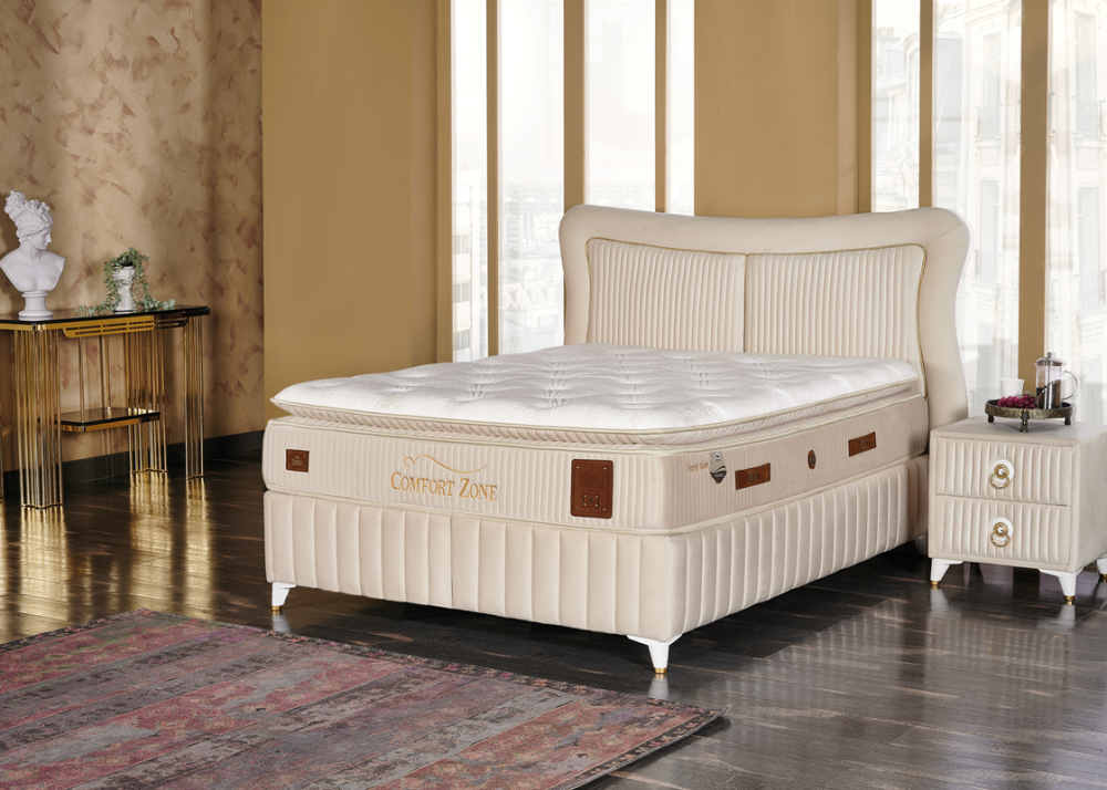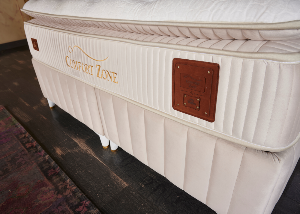 Матрак Comfort Zone е снабден с прошит ТОП матрак и луксозна дизайнерска дамаска, за която изработка е използвана и заешка кожа. Притежава две зони на различен комфорт.