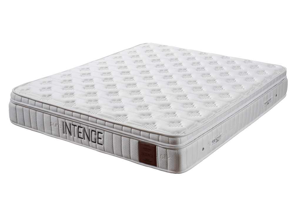 Матрак Intence разполага с ядро от Bonnell пружинна система, допълнено със слоеве от високоплътен дунапрен, DNS пяна, ортопедична пяна, омекотителна вата и силиконизирани влакна, които създават балансирана поддръжка за извивките на гръбначния стълб – кръста, гърба, врата, главата и коленете. Моделът е снабден със сваляем топ матрак и дизайнерска дамаска от трикотажен плат с въздушни капсули, която предотвратява изпотяването и осигурява свежа, хигиенична среда за сън.