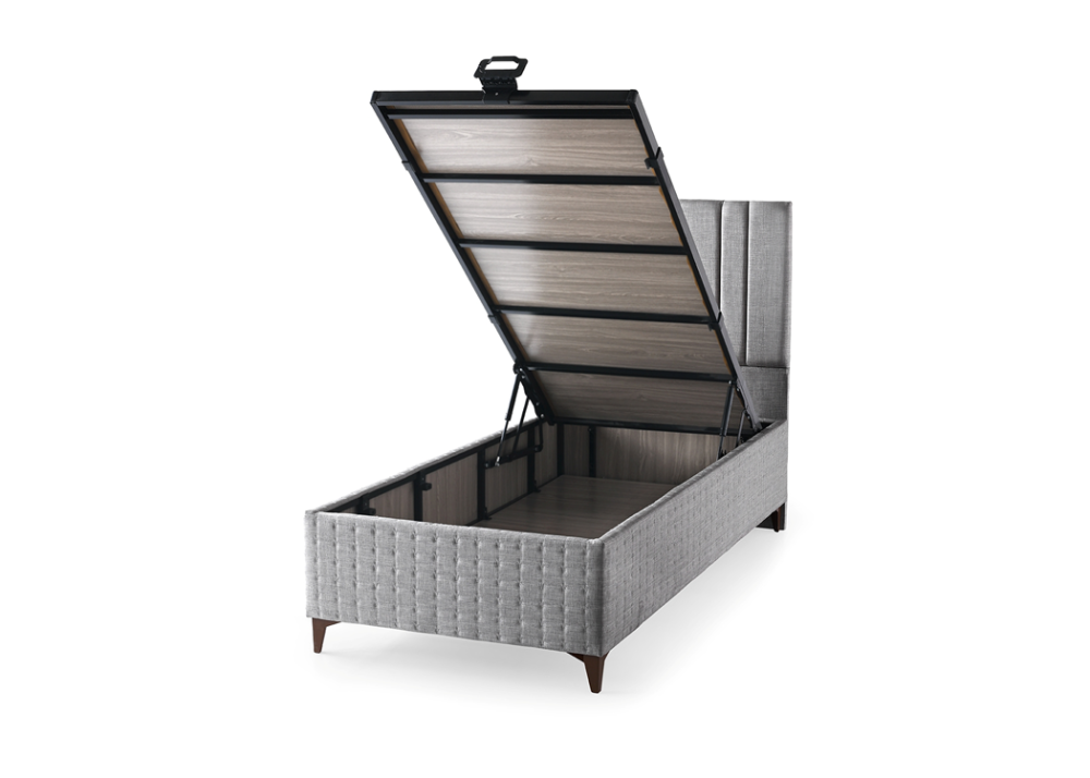 - Базата е снабдена с дъно и нов модел повдигаща система от 1бр (за единичните размери) / 2бр метална подматрачна рамка с цял ламиниран ПДЧ панел. Рамката е оборудвана с 2бр / 4бр газови амортисьори /2х2/ по 750N, може да се повдига всяка основа по отделно или заедно, има спирачка на механизма, която може да се ползва когато механизма е отворен. На дъното и рамката са монтирани вентилационни капачки. Основата предоставя голямо празно подматрачно пространство, подходящо за съхранение на спални завивки и други вещи.