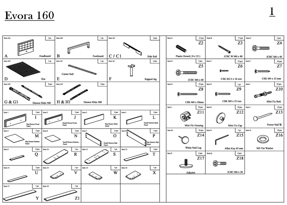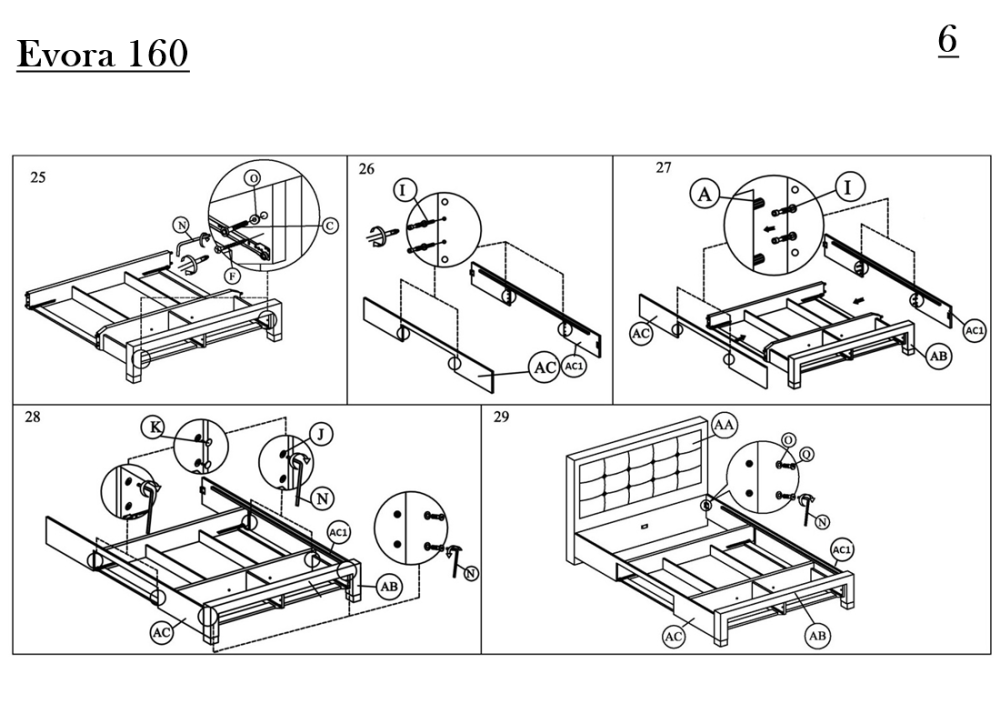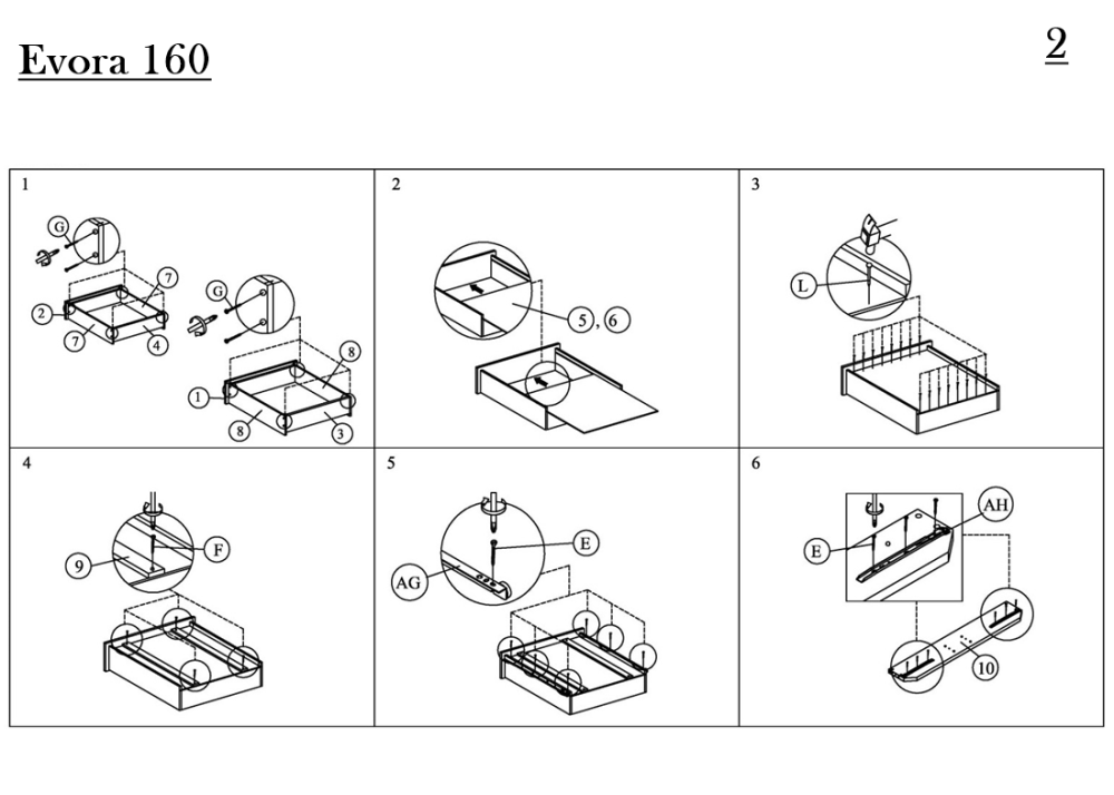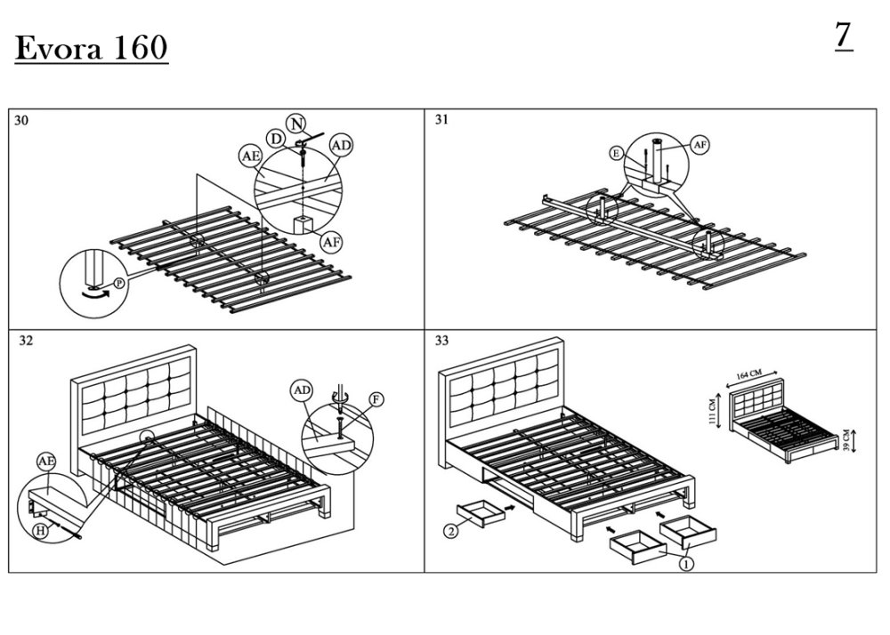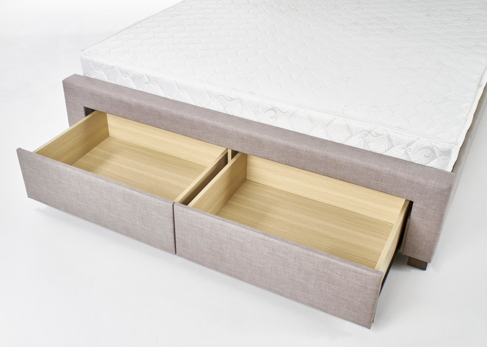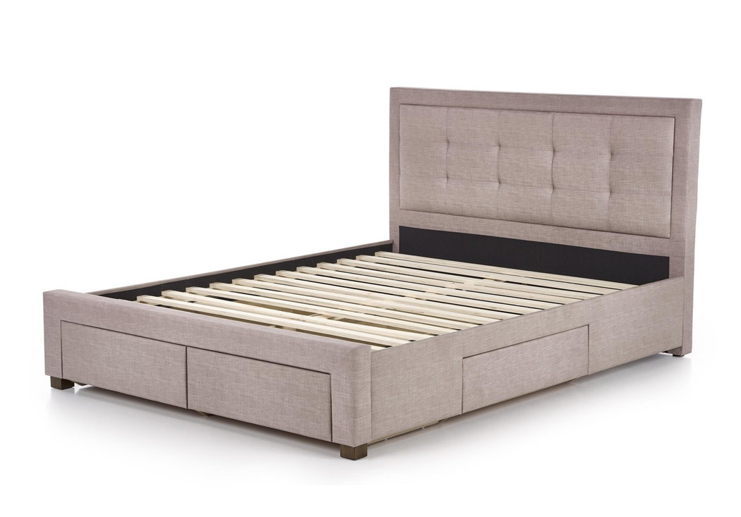 Тапицирано легло Evora е функционално спално легло с 4-четири чекмеджета. Конструкцията е здрава и устойчива, изработва се от MDF / масивно дърво. Състои се от стабилна основа, голяма табла и четири чекмеджета. Тапицирано легло Evora е снабдено с плъзгащи механизми на чекмеджетата и дървена подматрачна рамка.