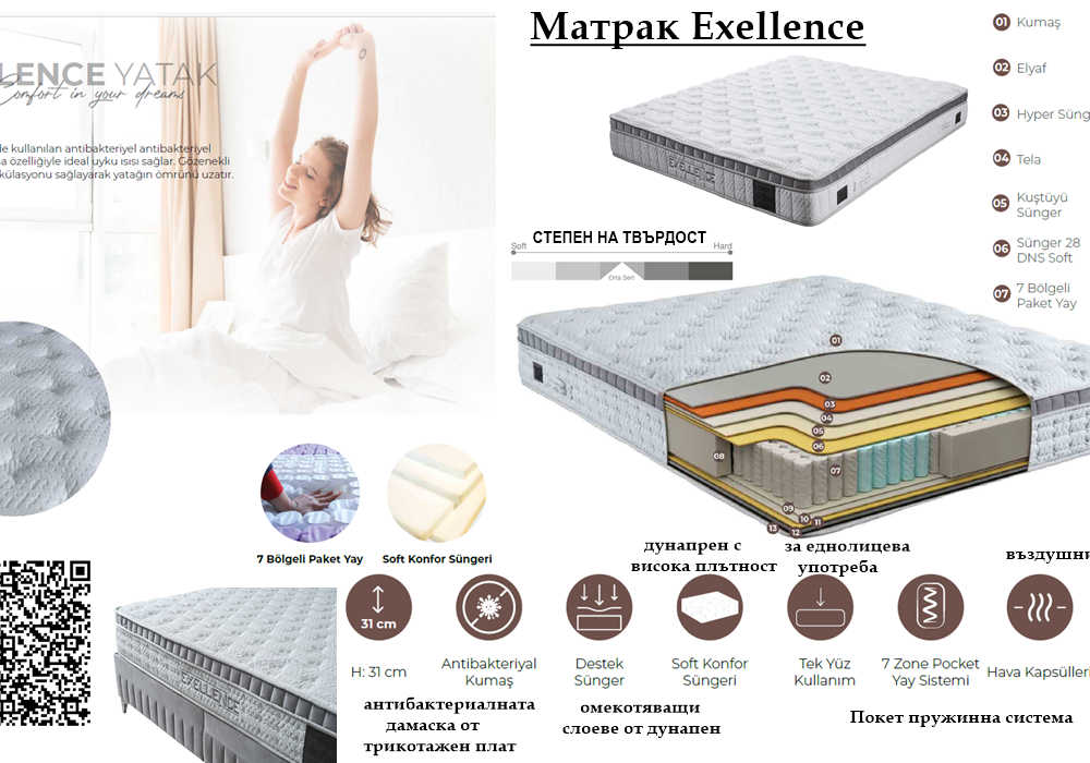 - Матрак Exellence – предназначен за еднолцева употреба.