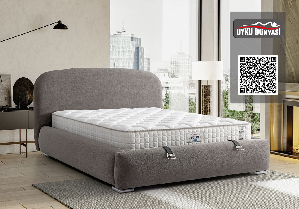 Тапицираното легло Felix е част от колекцията на мебели Uyku Dünyasi впечатлява с модерен дизайн, висококачествена изработка и функционални предимства, перфектния избор за елегантно и уютно спално обзавеждане.