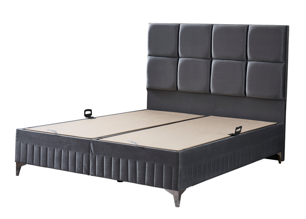Тапицираното легло се доставя разглобено, много добре пакетирано с велпапе и найлон на 3 части + матрака. Лесна за монтаж – табла, лява основа и дясна основа, които трябва да се сглобят (повдигащите подматрачни рамки с амортисьорите са сглобени фабрично). След сглобяването на 3-те основни модулни елемента, остава да се постави матрака.