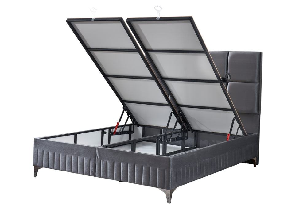 - Базата е снабдена с дъно и нов модел повдигаща система от 1бр (за единичните размери) / 2бр метална подматрачна рамка с цял ламиниран ПДЧ панел. Рамката е оборудвана с 2бр / 4бр газови амортисьори /2х2/ по 750N, може да се повдига всяка основа по отделно или заедно, има спирачка на механизма, която може да се ползва когато механизма е отворен. На дъното и рамката са монтирани вентилационни капачки. Основата предоставя голямо празно подматрачно пространство, подходящо за съхранение на спални завивки и други вещи.