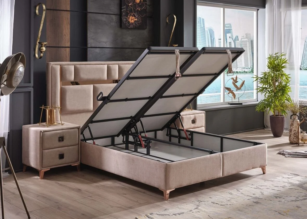 - Спалнята е лесна за монтаж – табла, лява основа и дясна основа, които трябва да се сглобят (повдигащите подматрачни рамки с амортисьорите са сглобени фабрично).
